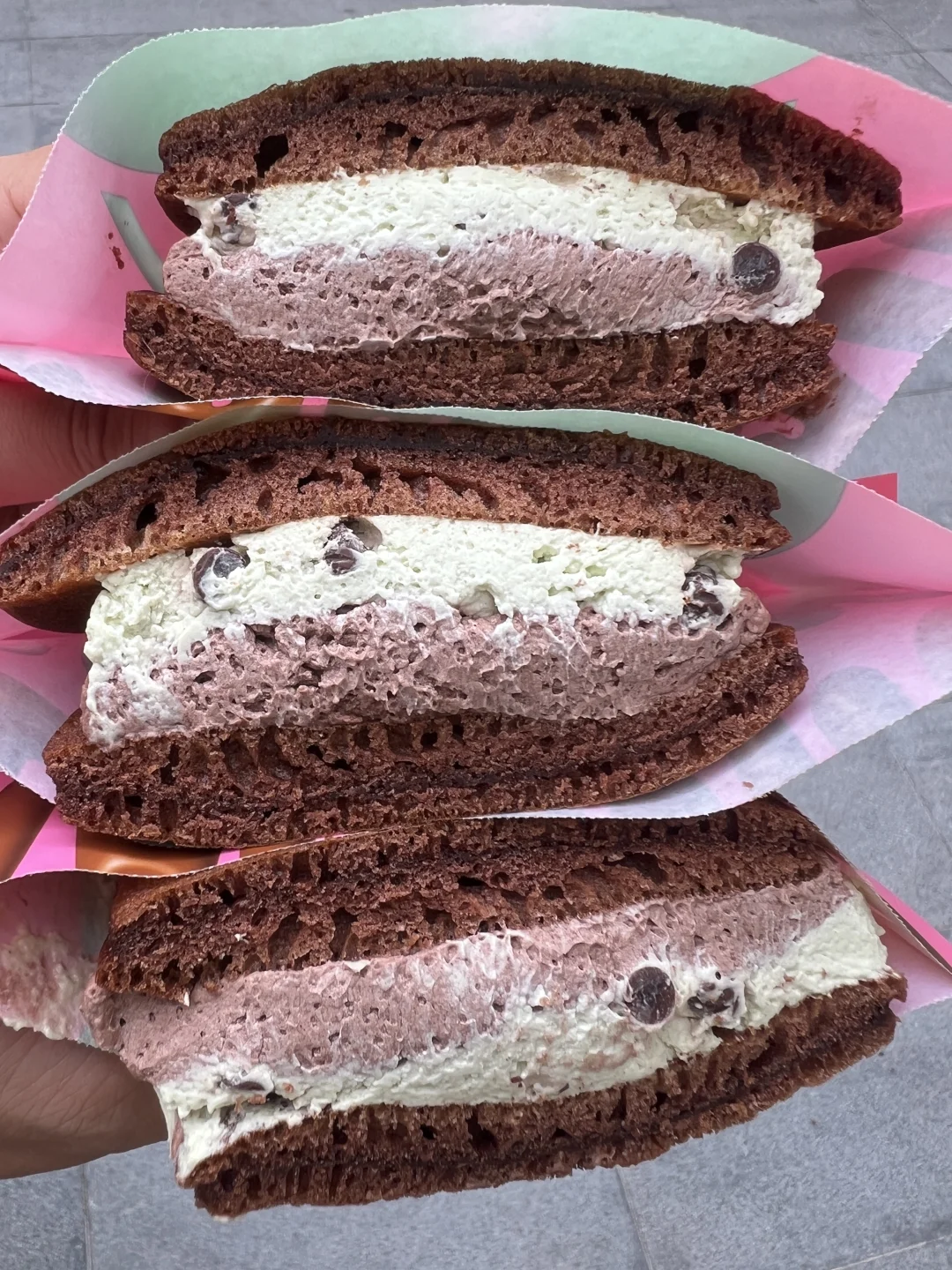 这次是薄荷巧克力,真的薄荷脑袋爱s了 内陷很足了,满满薄荷味和巧克力味 还加了巧克力豆,吃完整个人都清凉了