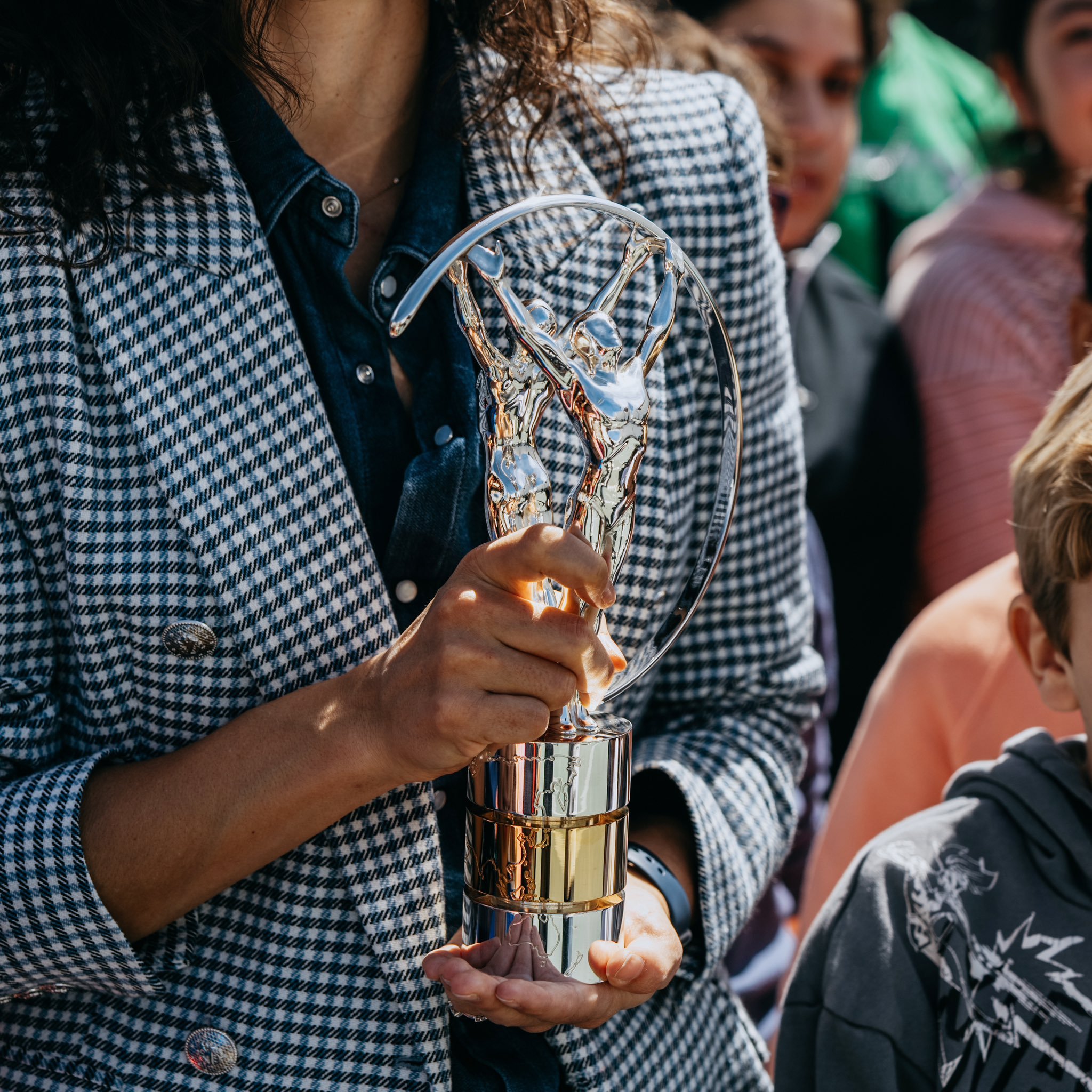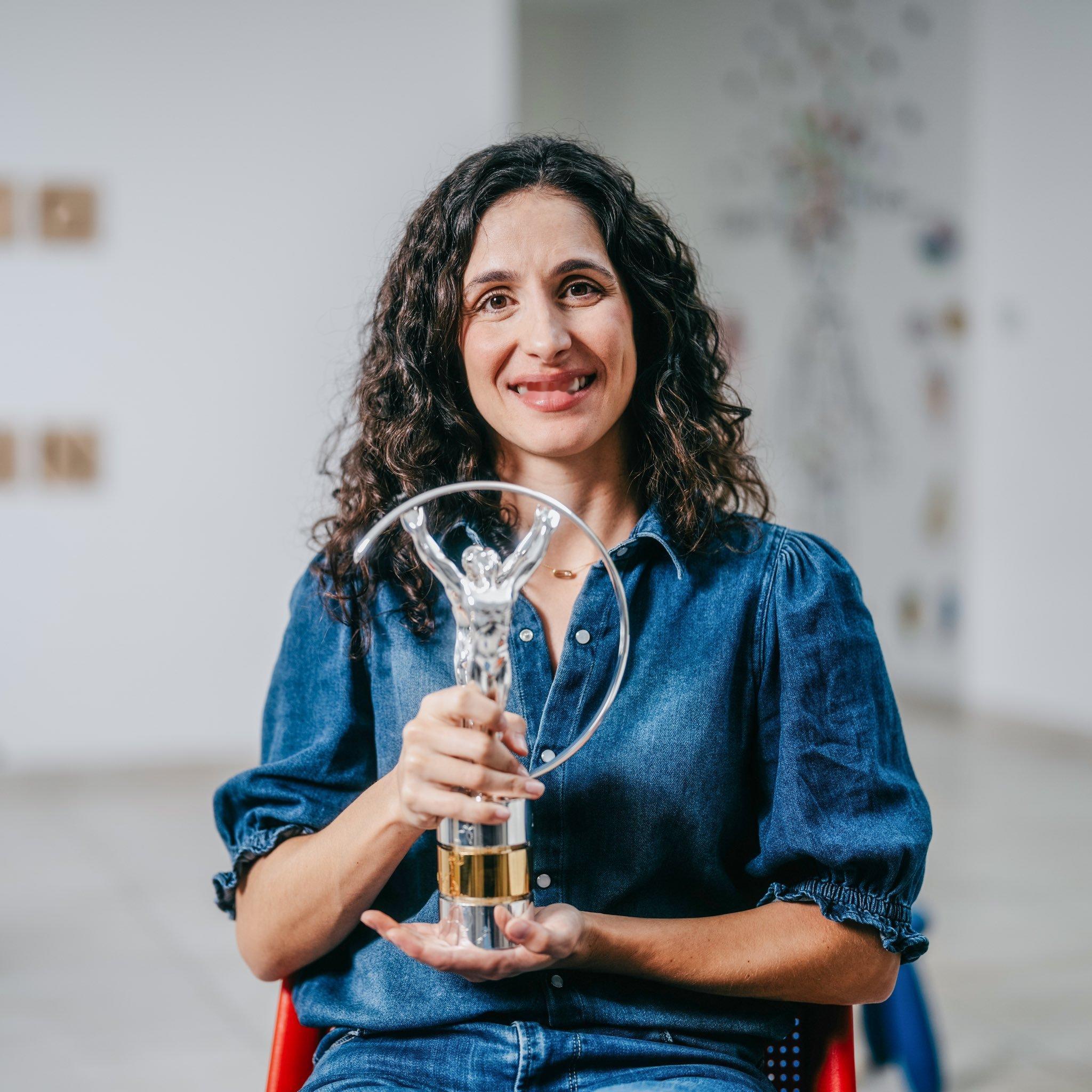 梅花小姐姐携劳伦斯体育公益奖的奖杯亮相纳达尔基金会的推广活动,太美丽动人了[爱你