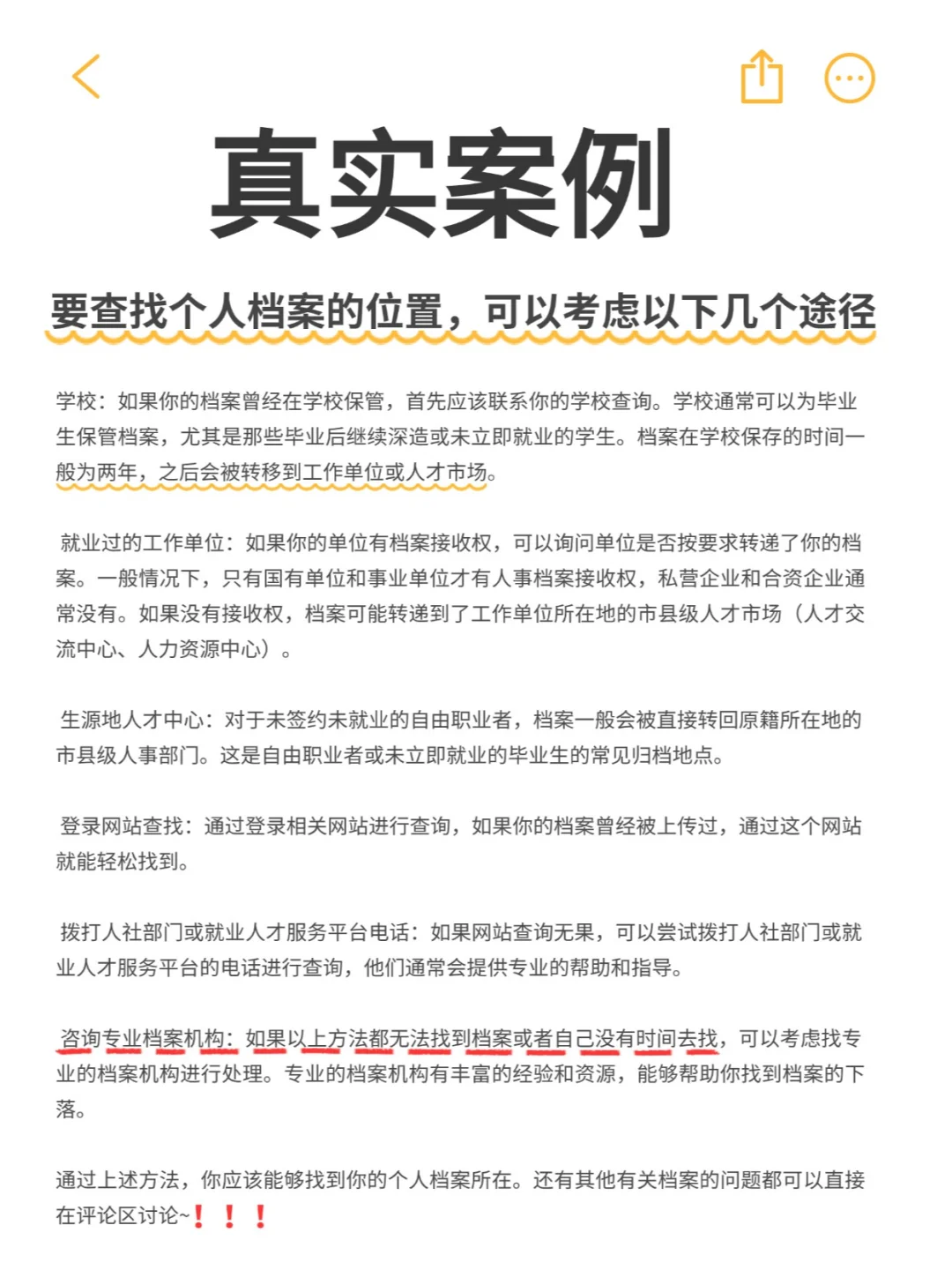 咨询专业档案机构:如果以上方法都无法找到档案或者自己没有时间去找,可以考虑找专业的档案机构进行处理。专业的档案机构有丰富的经验和资源,能够帮助你找到档案的下落。