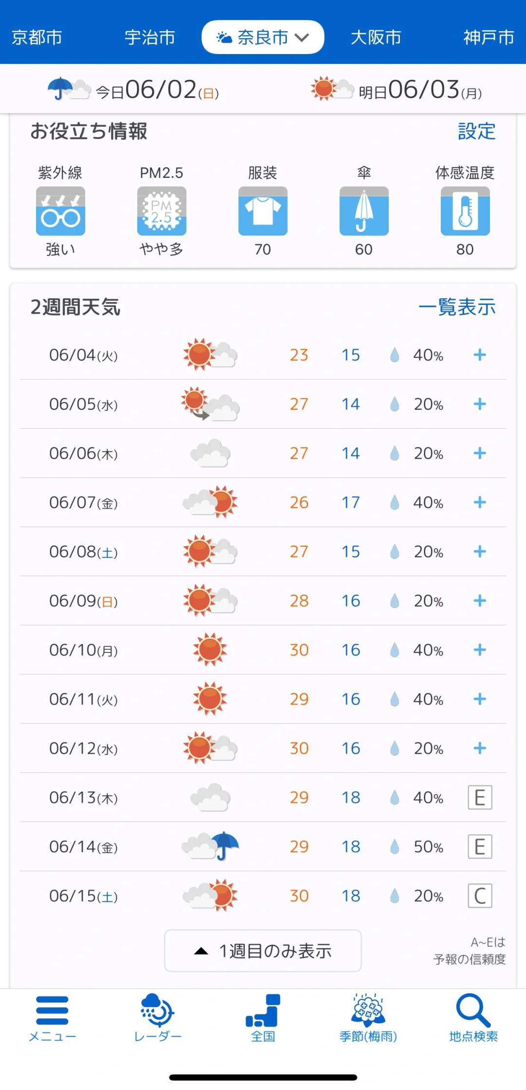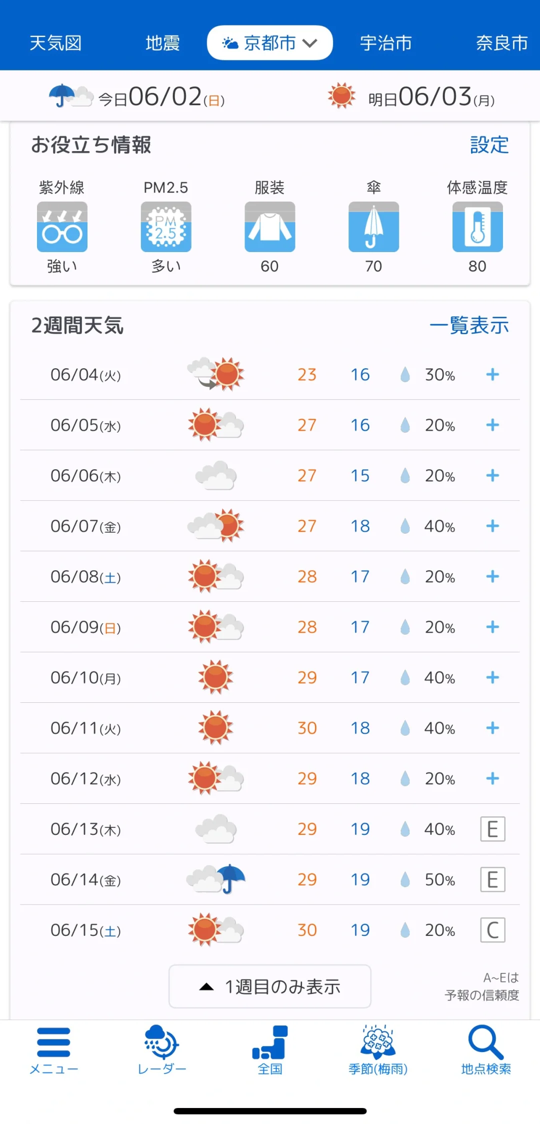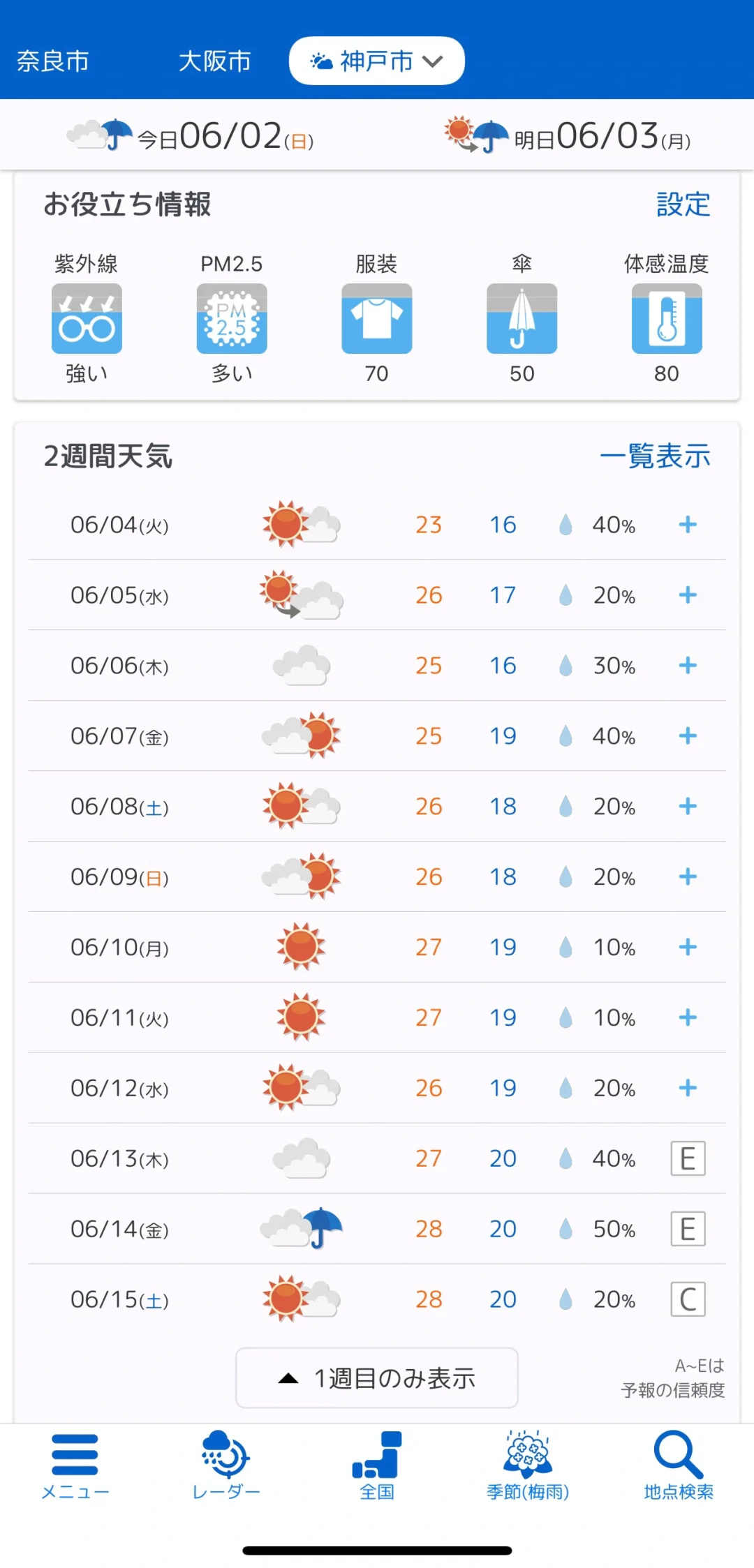 在tenki.jp查了天气预报,给最近需要出行的小伙伴们一个参考~希望六月的好天气保持住🙏