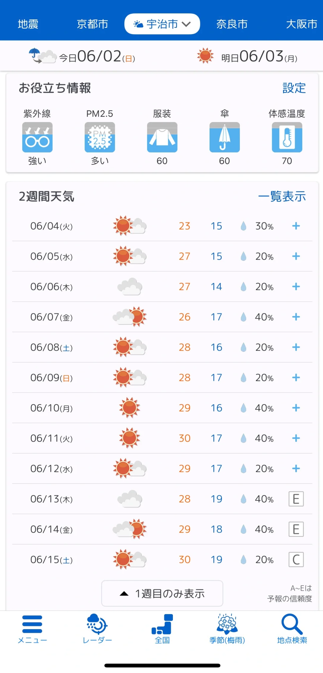 6.2更新日本🇯🇵关西地区天气预报☀️