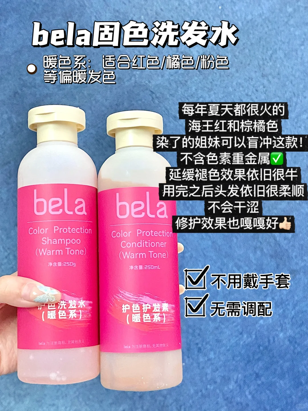身边总有朋友问我为什么每次染发掉色都很慢 我发现大家好像都不知道固色洗发水🤷♀️ 今天来给大家安利一下bela的固色洗发水 每次染完头发我就立马用,发色能坚持很久~ 使用方法很简单,直接代替日常洗发即可 ✅ 里面不含色素,所以洗头的时候可以不戴手套不会染指甲和弄脏手,用起来很安心! 他家除了暖色系还有冷色系和自然色系,染了头发的姐妹直接按照色系选择即可💓 用了再不用经常跑发廊补色,懒人必备!🐷 平时爱染发的姐妹和新手小白都请闭眼冲🚀