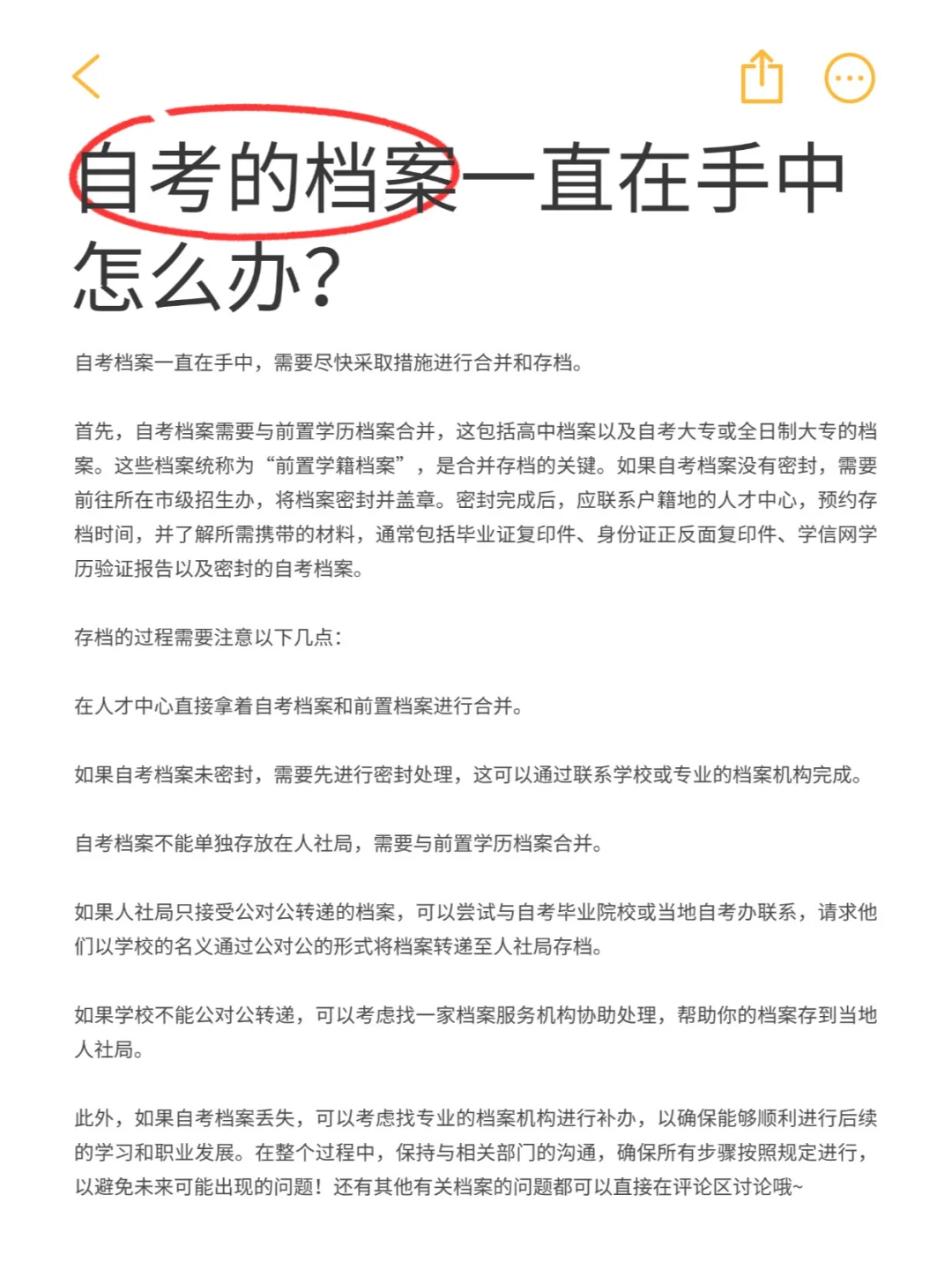 此外,如果自考档案丢失,可以考虑找专业的档案机构进行补办,以确保能够顺利进行后续的学习和职业发展。在整个过程中,保持与相关部门的沟通,确保所有步骤按照规定进行,以避免未来可能出现的问题!还有其他有关档案的问题都可以直接在评论区讨论哦~