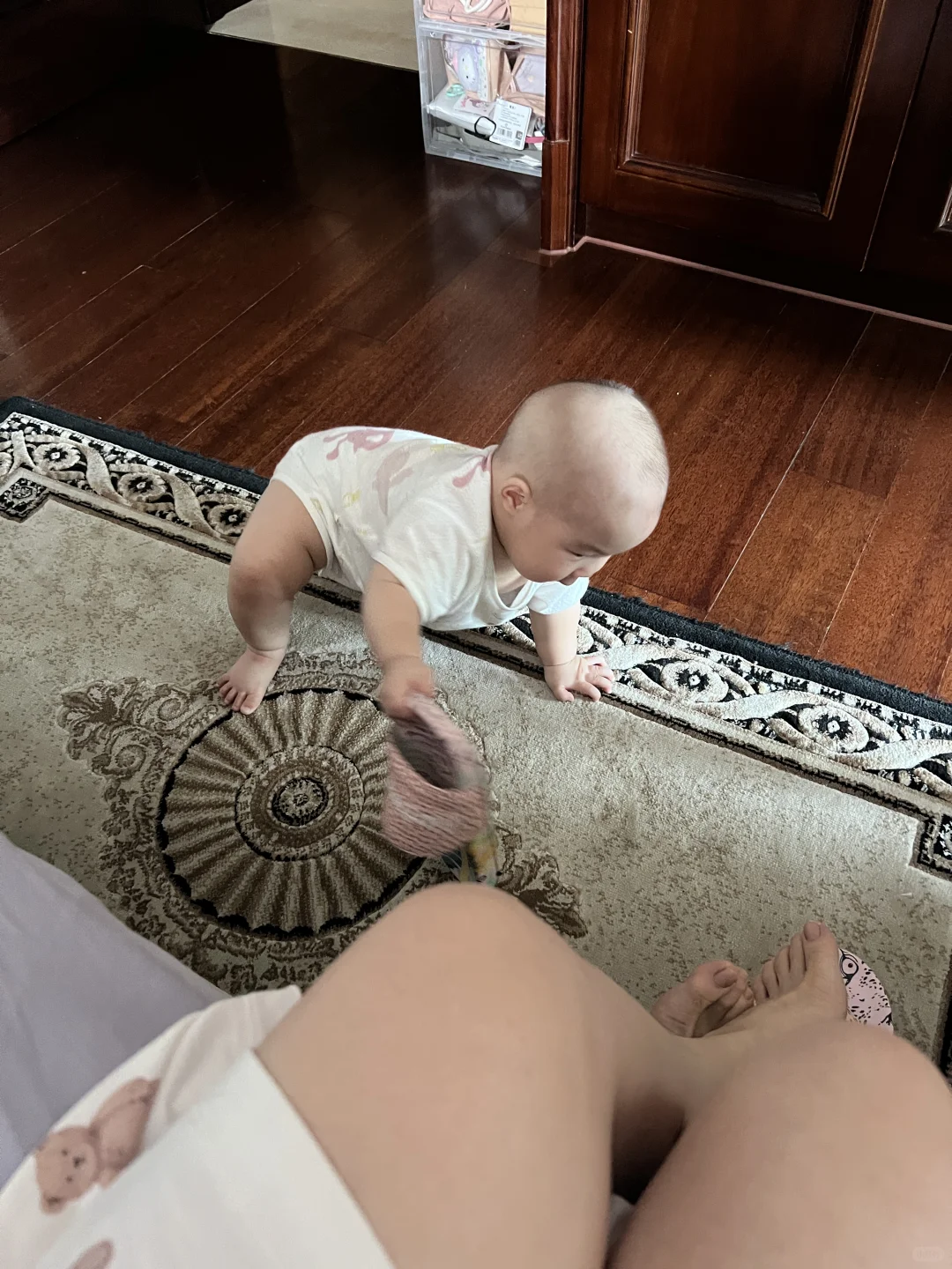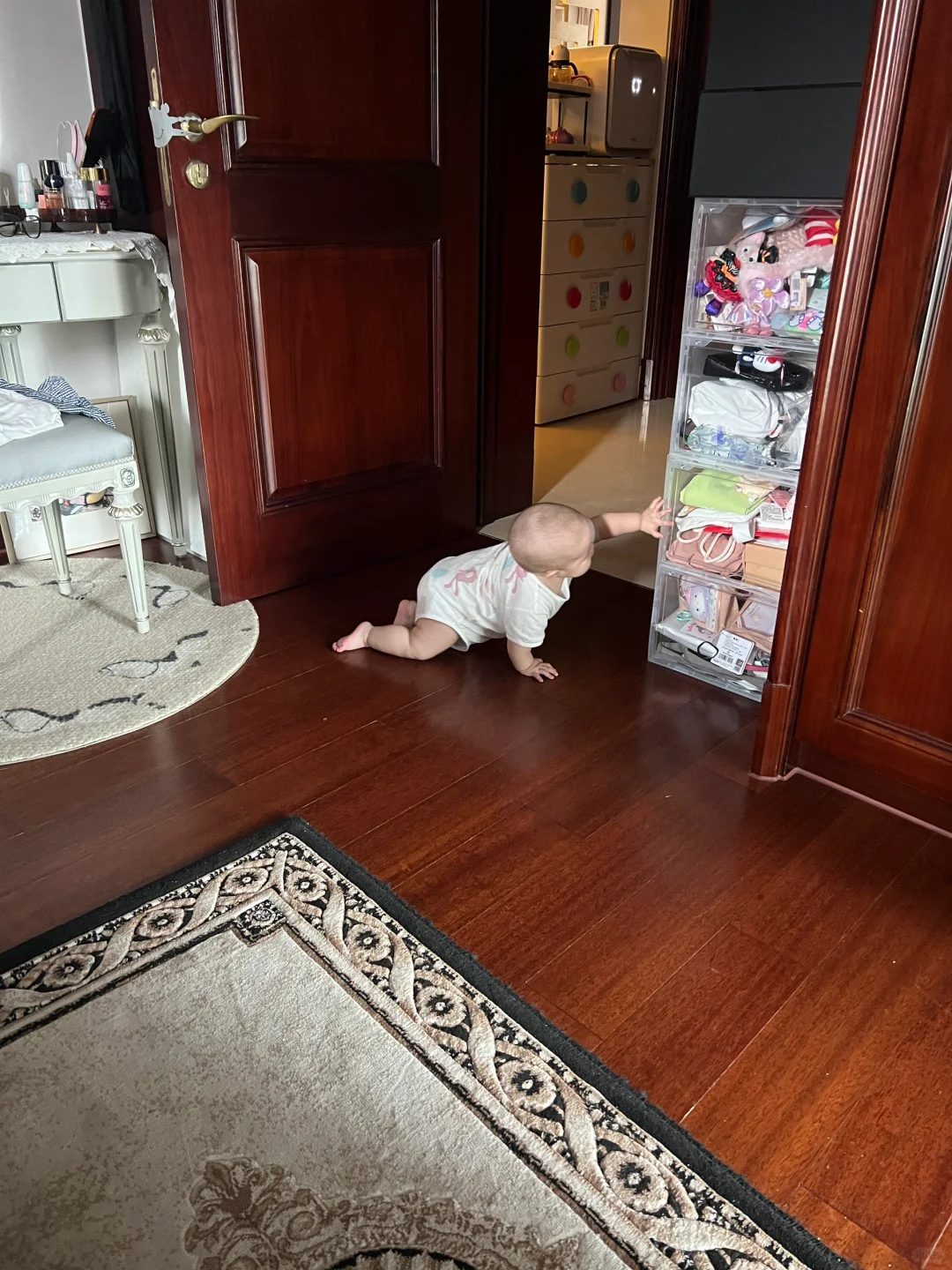 听说宝宝多爬对内耳前庭发育特别好,果断放神兽出笼✌️果然爬完放电成功,吃的好,睡得好~大运动遥遥领先。