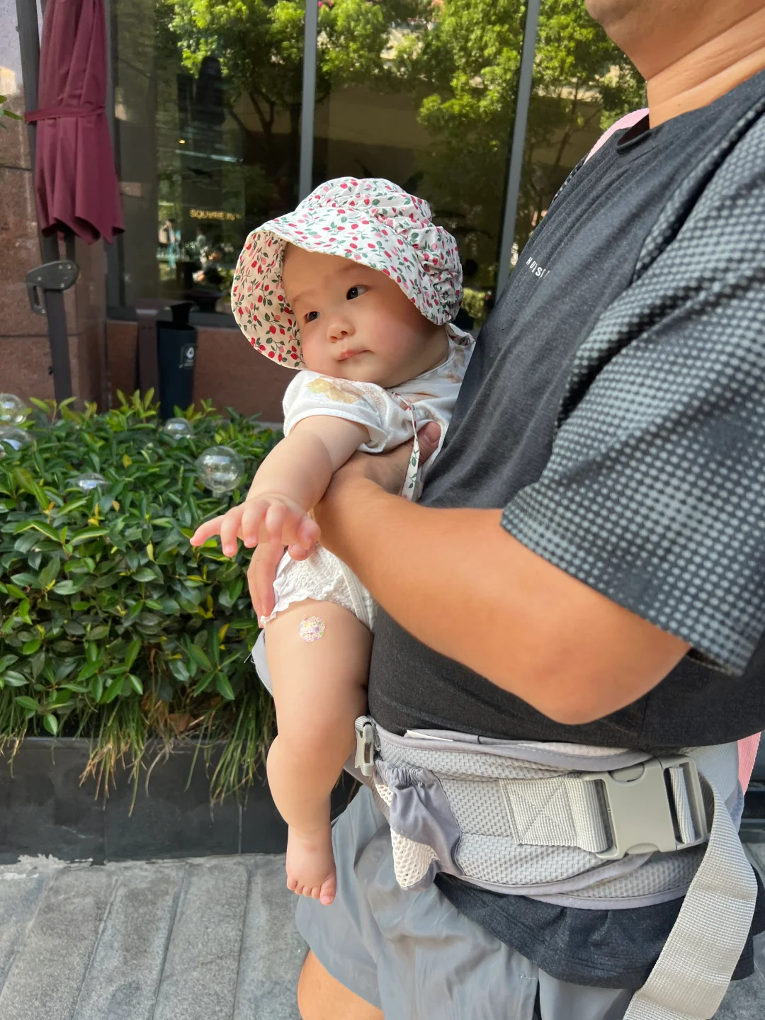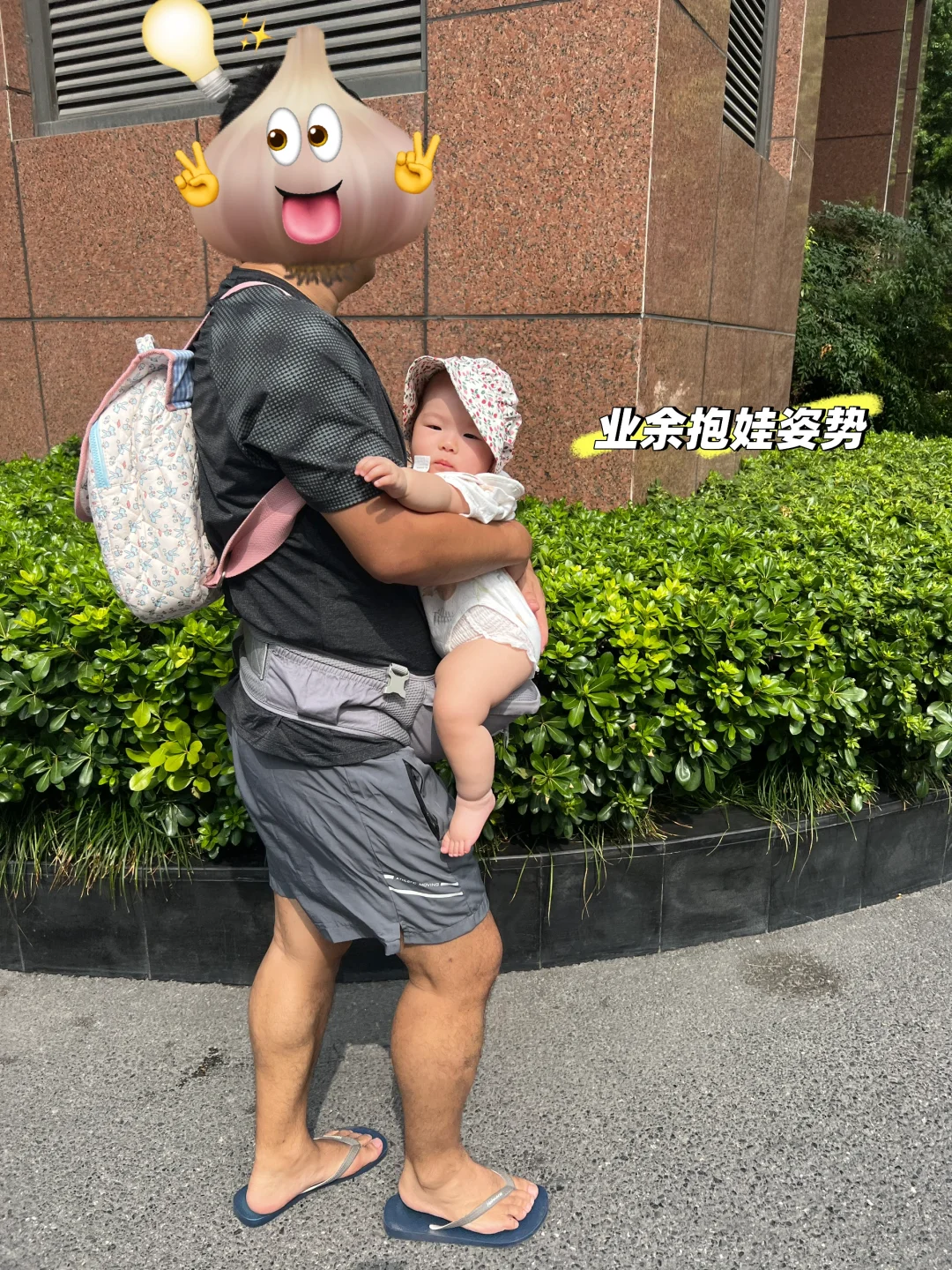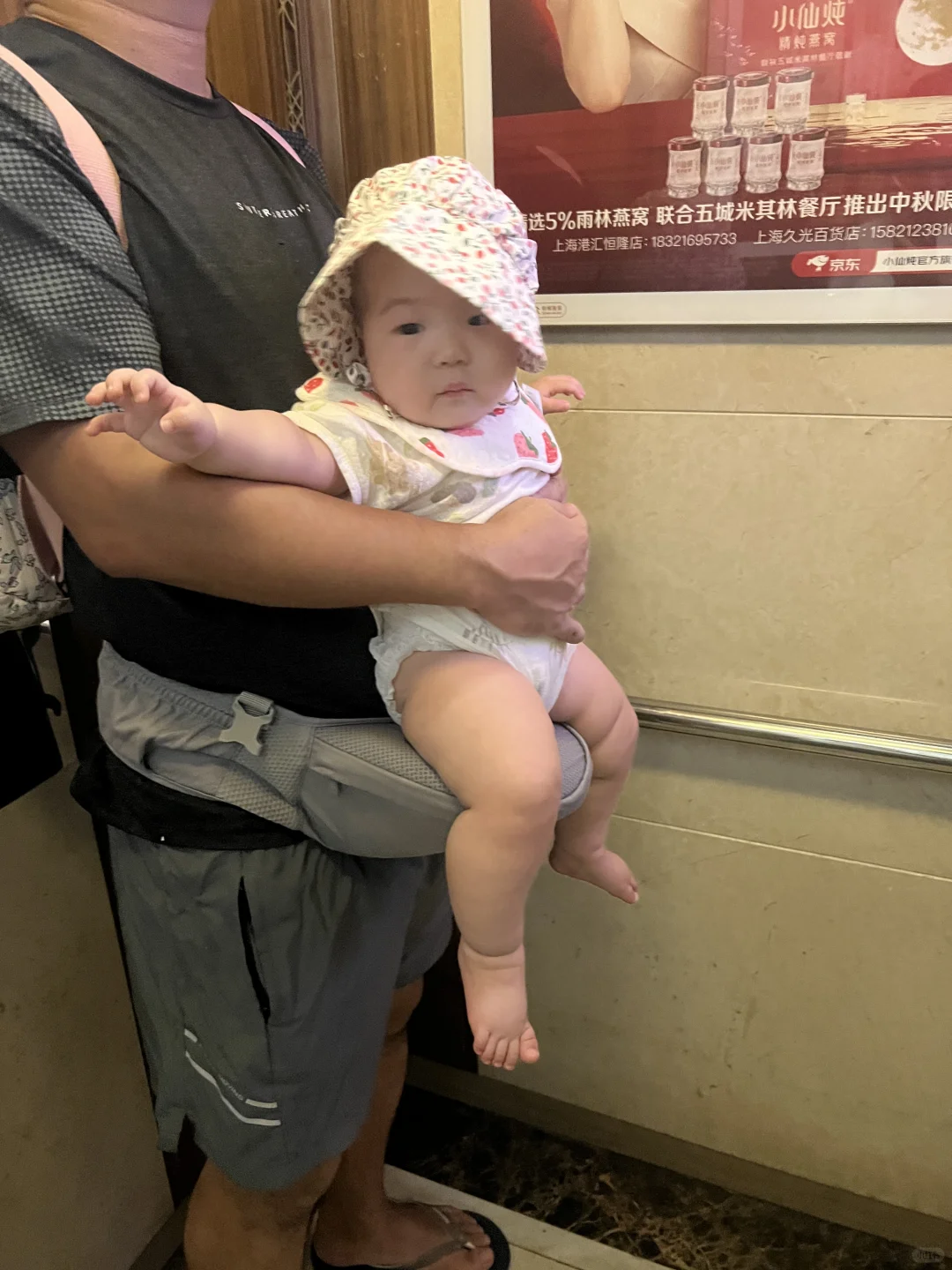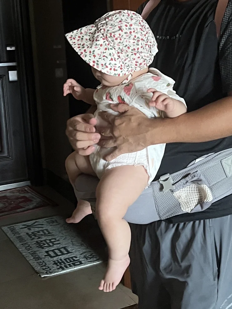 爸爸抱娃果然姿势都好随意,我老公也这样。宝宝的腿腿真不错~