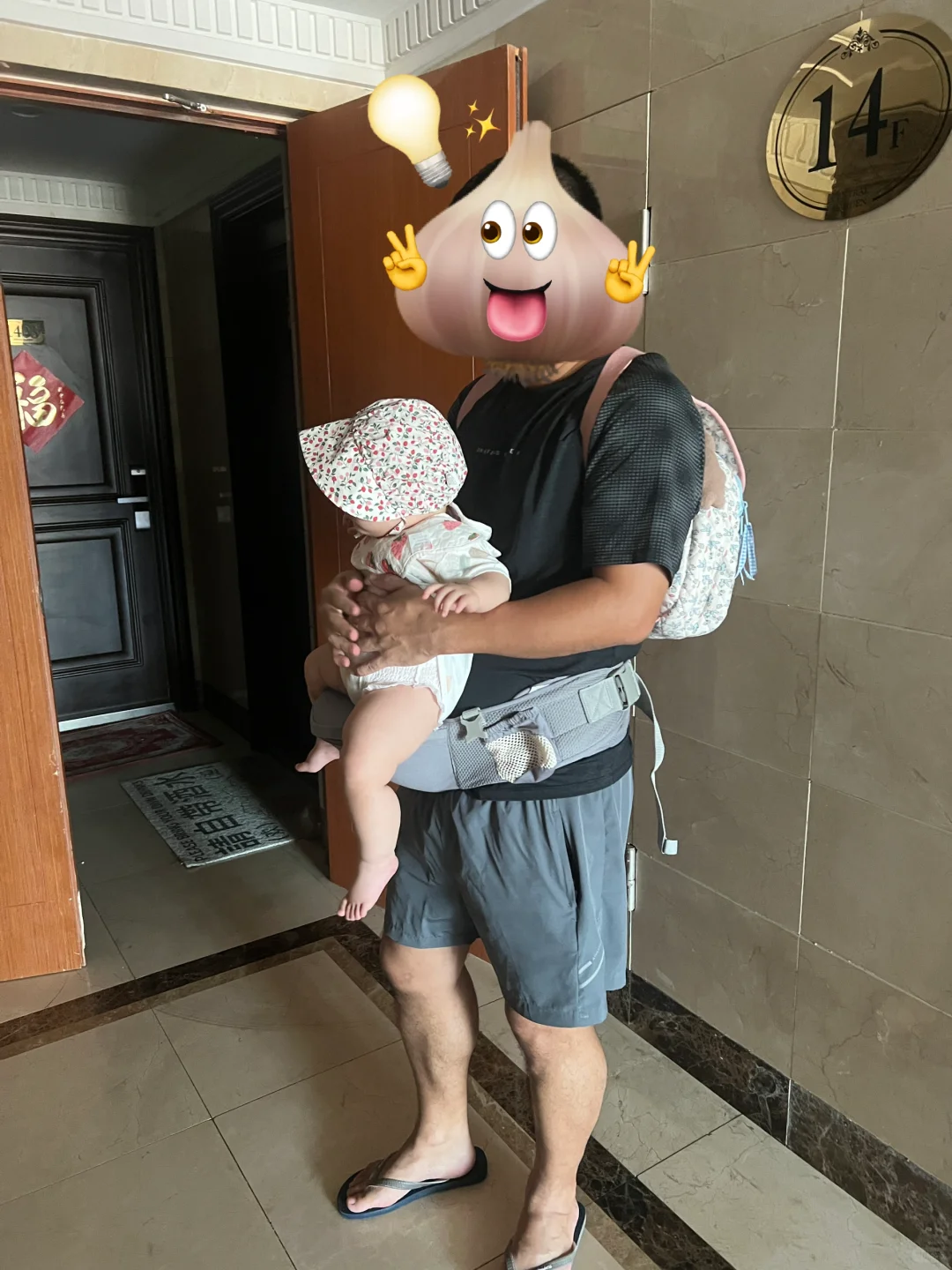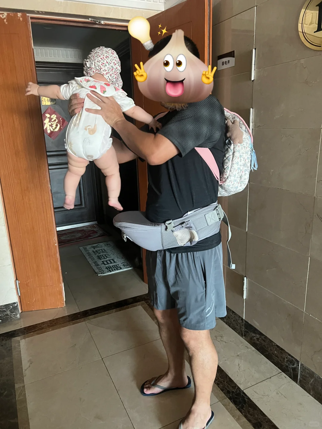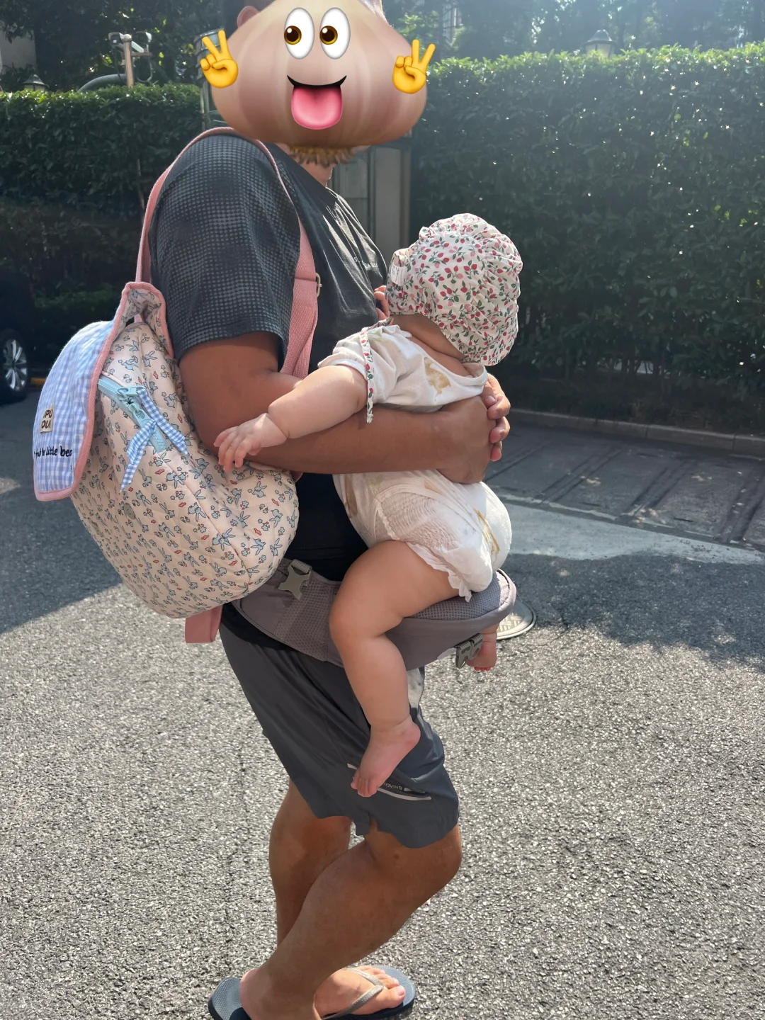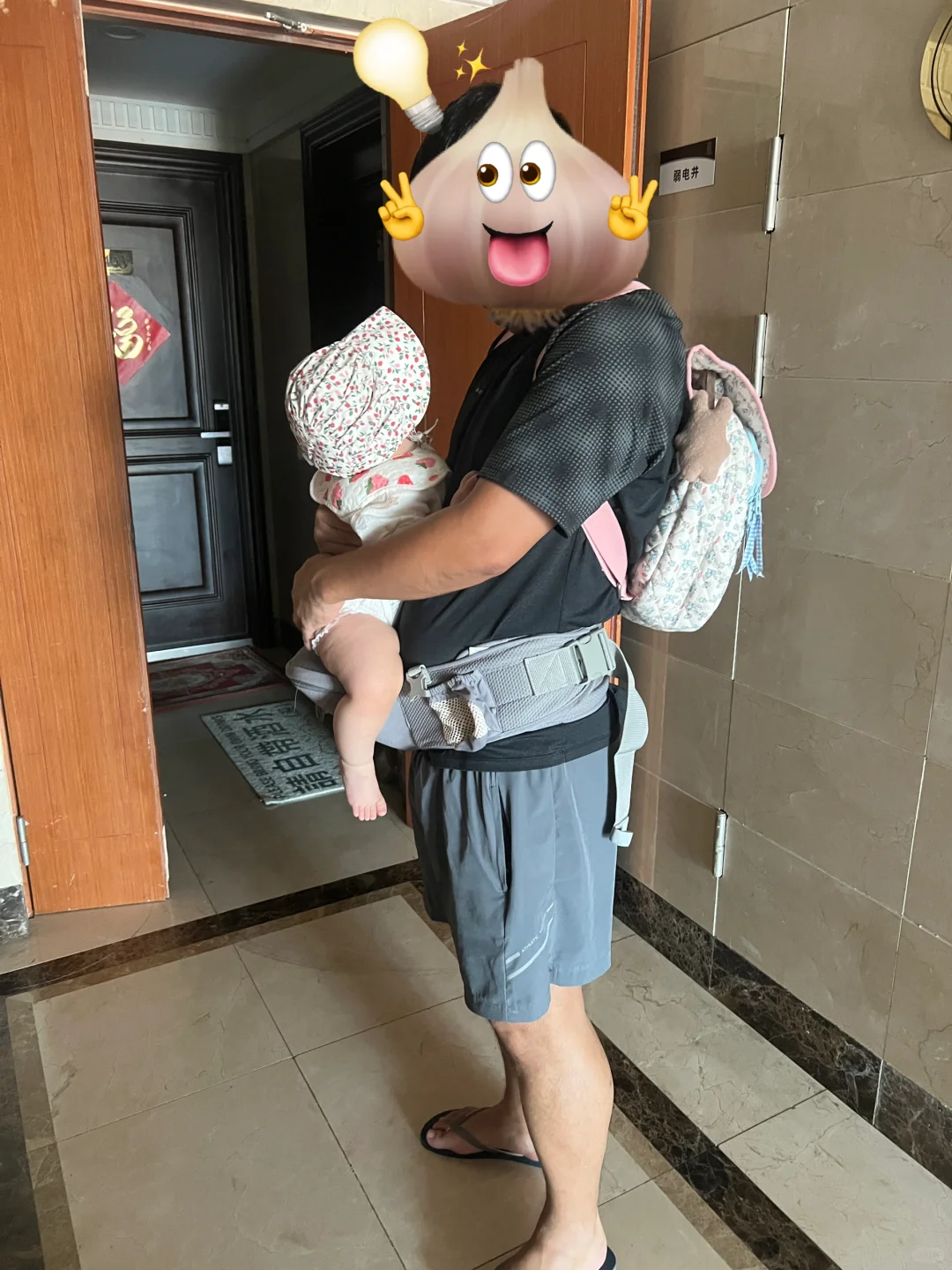 爸爸抱娃果然姿势都好随意,我老公也这样。宝宝的腿腿真不错~