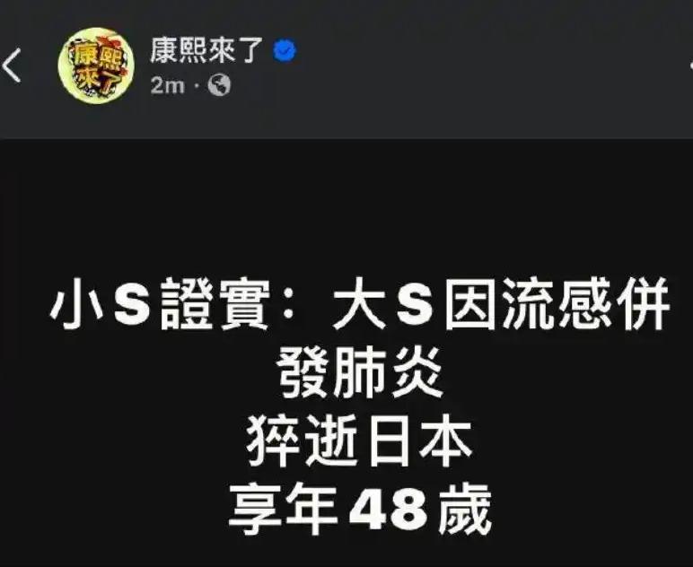 而且还有很多人觉得,现在的大S才48岁,如果真是普通的肺炎加流感,是绝对不可能直接离开人世的,很有可能是某些原因引起身体状态急剧下降。