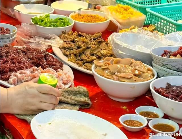 “10点准时开门,早到一分钟都得在门口吹冷风。”本地朋友阿杰拍着我的肩膀,指着已经排起的五人小队,“你看那几个骑电动车的后生仔,都是从枫溪区专门过来的。”玻璃柜里码着码得整整齐齐的牛杂:粉白的牛肠翻出洁净的内壁,蜂窝状的牛肚还带着新鲜的肌理,旁边竹筐里的本地小葱绿得发亮。