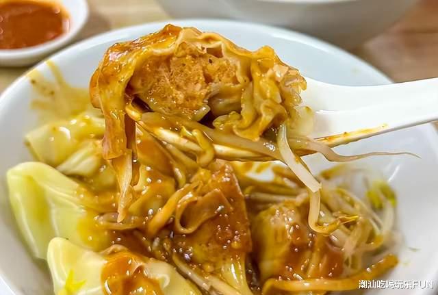 端上桌时我才懂什么叫“皮薄馅饱”:澄面皮在灯光下透着淡淡的粉色,筷子轻戳能感觉到馅料在里面微微颤动。咬开的瞬间,沙茶酱的浓醇香气混着猪肉的鲜甜在嘴里炸开——原来老板用的是当天现杀的土猪后腿肉,剁馅时加了少许鱼露提鲜,嚼起来既有颗粒感又带着弹牙的韧劲。最绝的是那勺沙茶酱,能吃出花生酱的绵密、虾米的咸鲜,还有一丝若有若无的南洋椰香。虽然沙茶粿条的汤底同样浓郁,但饺子皮的Q弹与馅料的嚼劲形成奇妙对比,个人更爱饺子咬破瞬间爆出的肉汁。8元小份足足10个,性价比堪比自家厨房。
