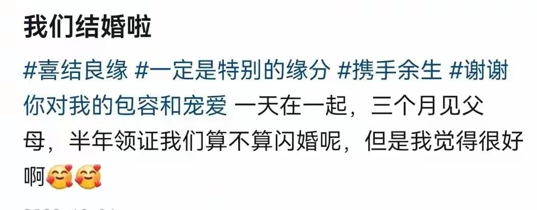 杨高耸简称小杨与妻子于2023年10月结婚,他们的爱情曾令身边人羡慕不已。