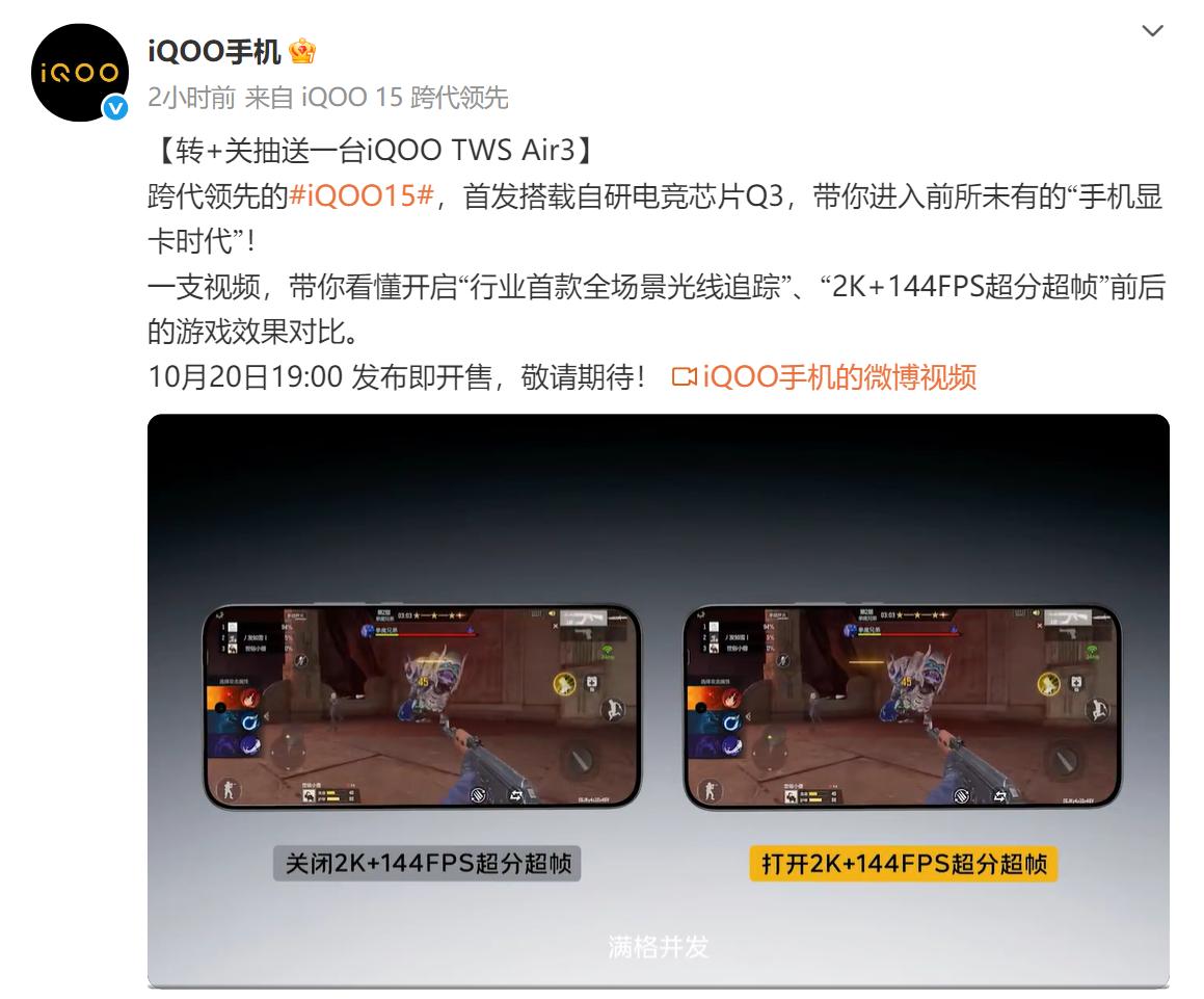 目前iQOO 15新机发布会已经定档10月20日19:00时,还有全新平板iQOO Pad5e、智能手表iQOO WATCH GT 2 和蓝牙耳机iQOO TWS 5一起在发布会上亮相,届时一定能带来更多惊喜。