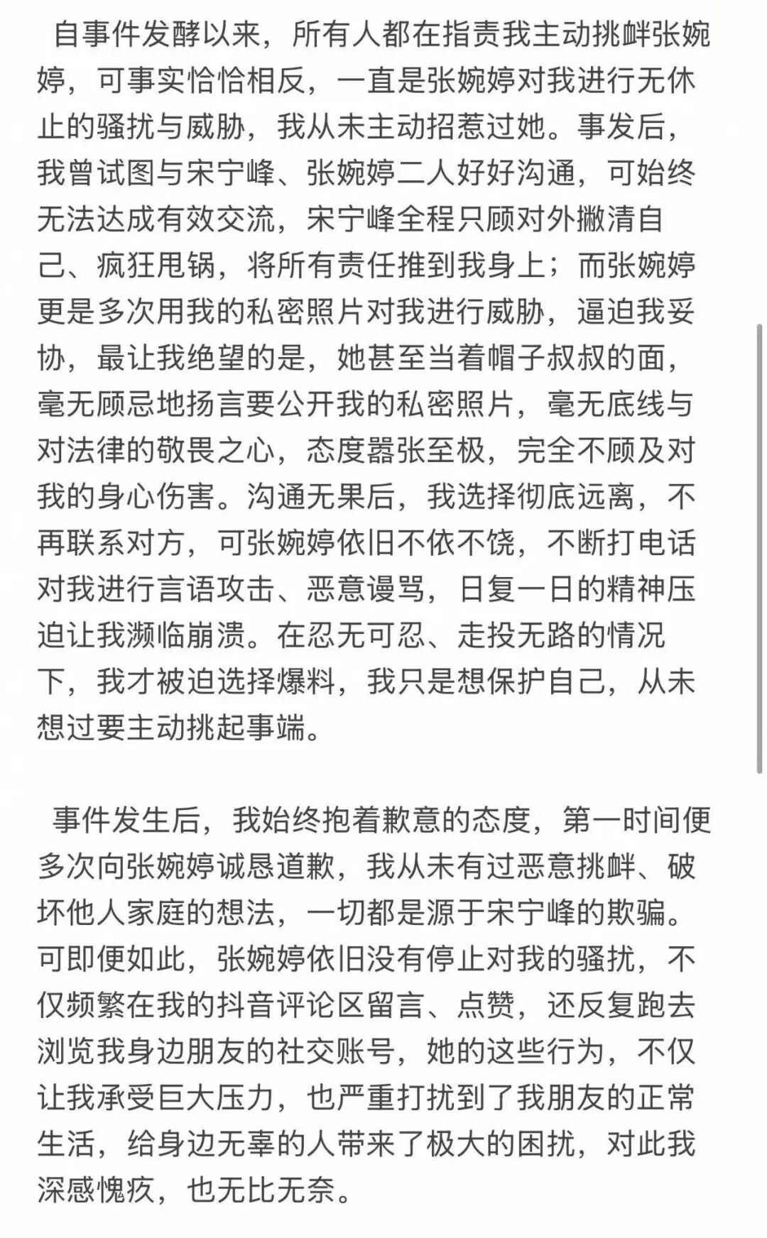 她在声明中提到的人,并不只是宋宁峰,还有之前被全网同情的张婉婷。