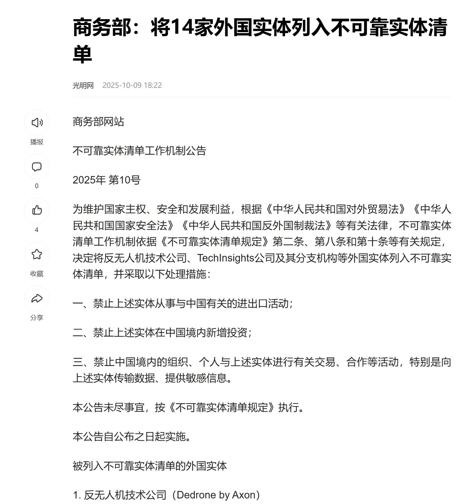 这周,商务部一口气把14家美国军工领域的公司全面列入“实体清单”。这批美企的经营领域包括但不限于航空航天、自助机器人、国防信息服务等。