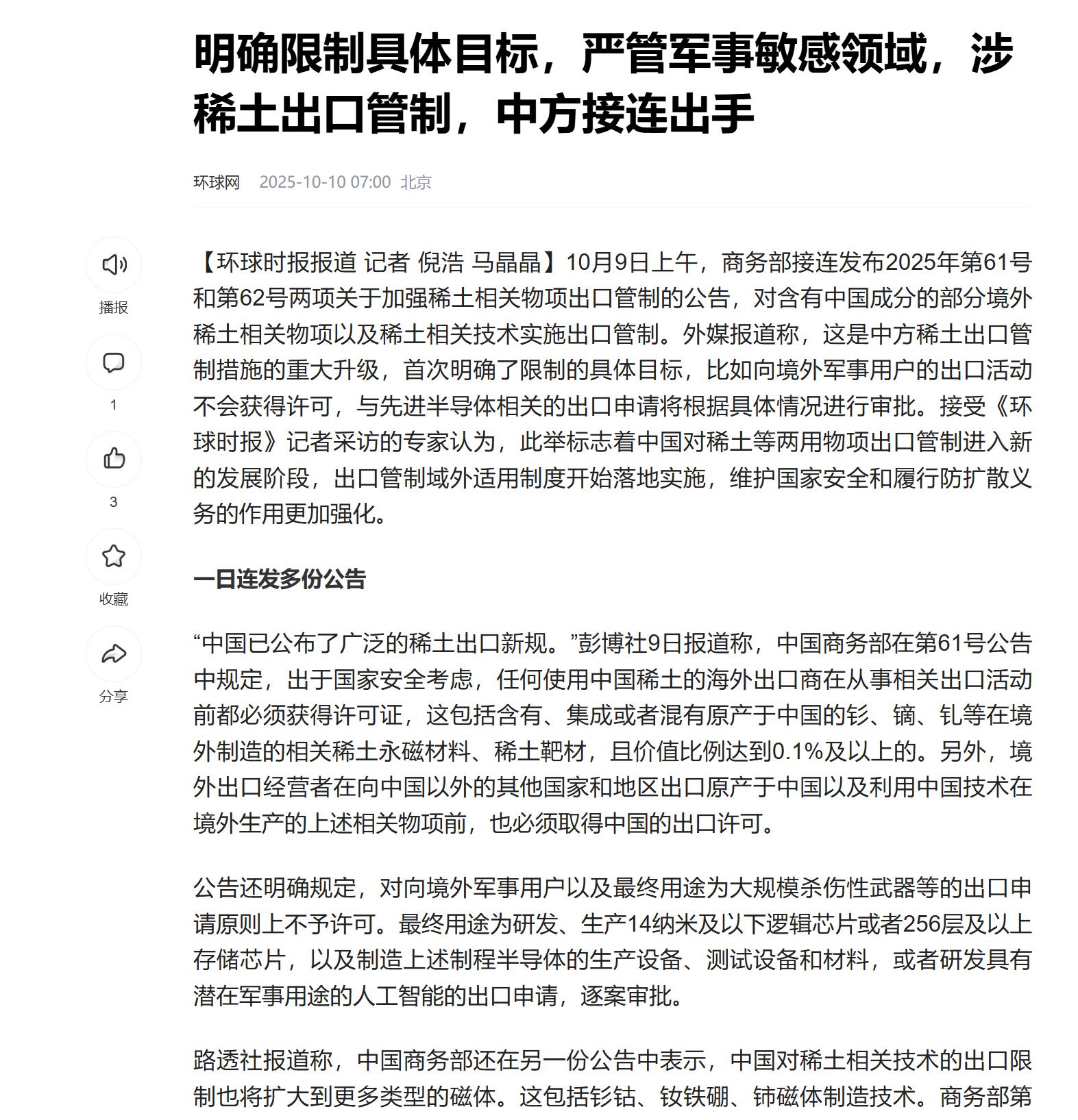 第一件事,继续严控关键矿产、稀土产业链,以及敏感材料的生产和出口环节。