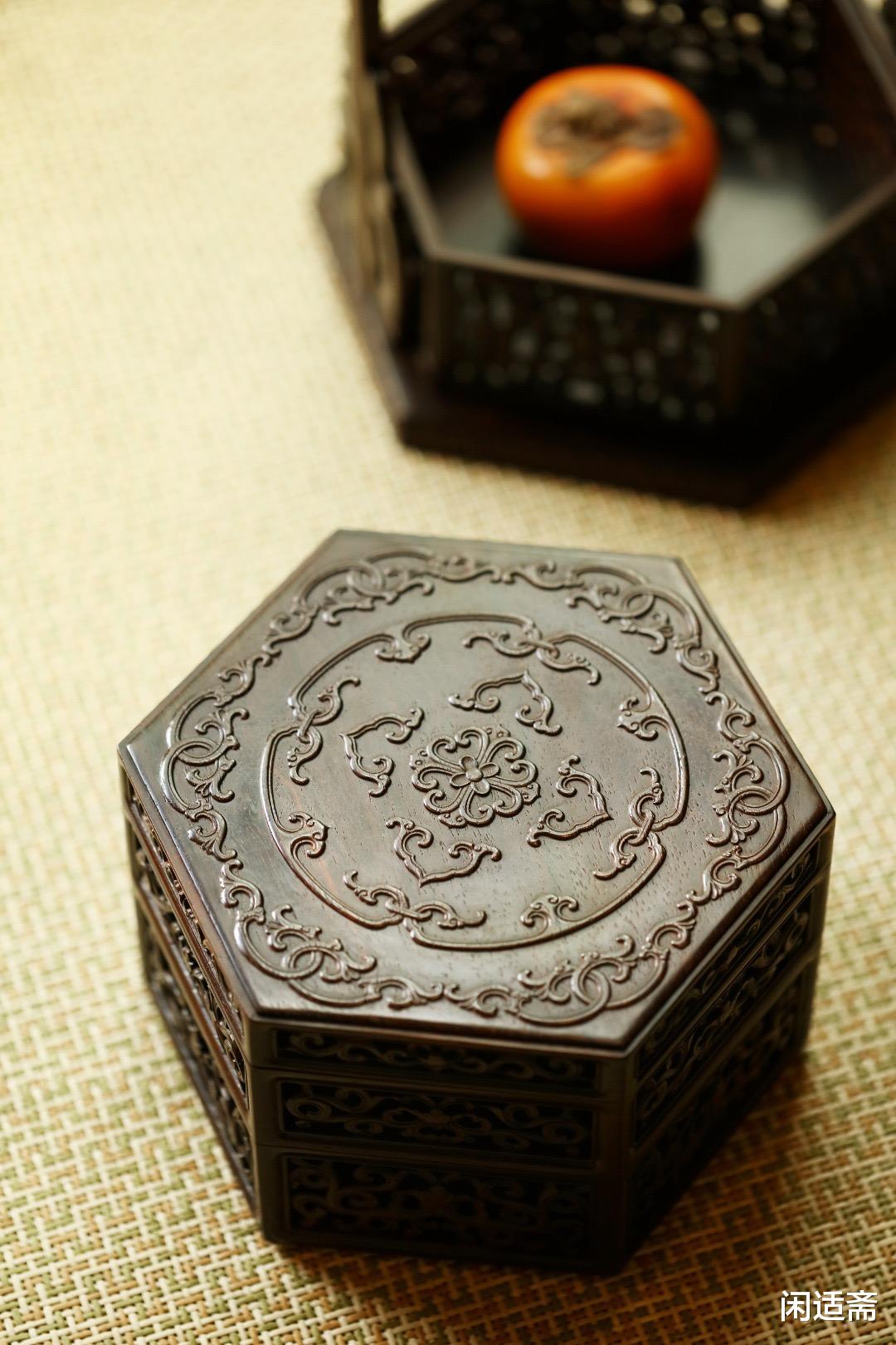 大红酸枝【卷草纹】六角提盒