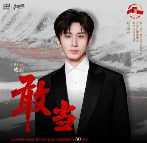 8月1日10:00,由成毅演唱的中国人民抗日战争暨世界反法西斯战争胜利80周年重点推广曲《敢当》正式登陆QQ音乐、酷狗音乐、酷我音乐三大平台。这首由北京市委宣传部等联合出品的红歌,以磅礴歌词与热血旋律传递民族担当,上线即引爆全网关注。
