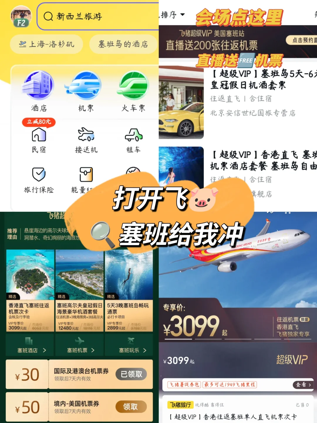 而且飞猪每周三都有超级VIP活动,超V直播间每场会送200张免费机票,一定不要错过哟!