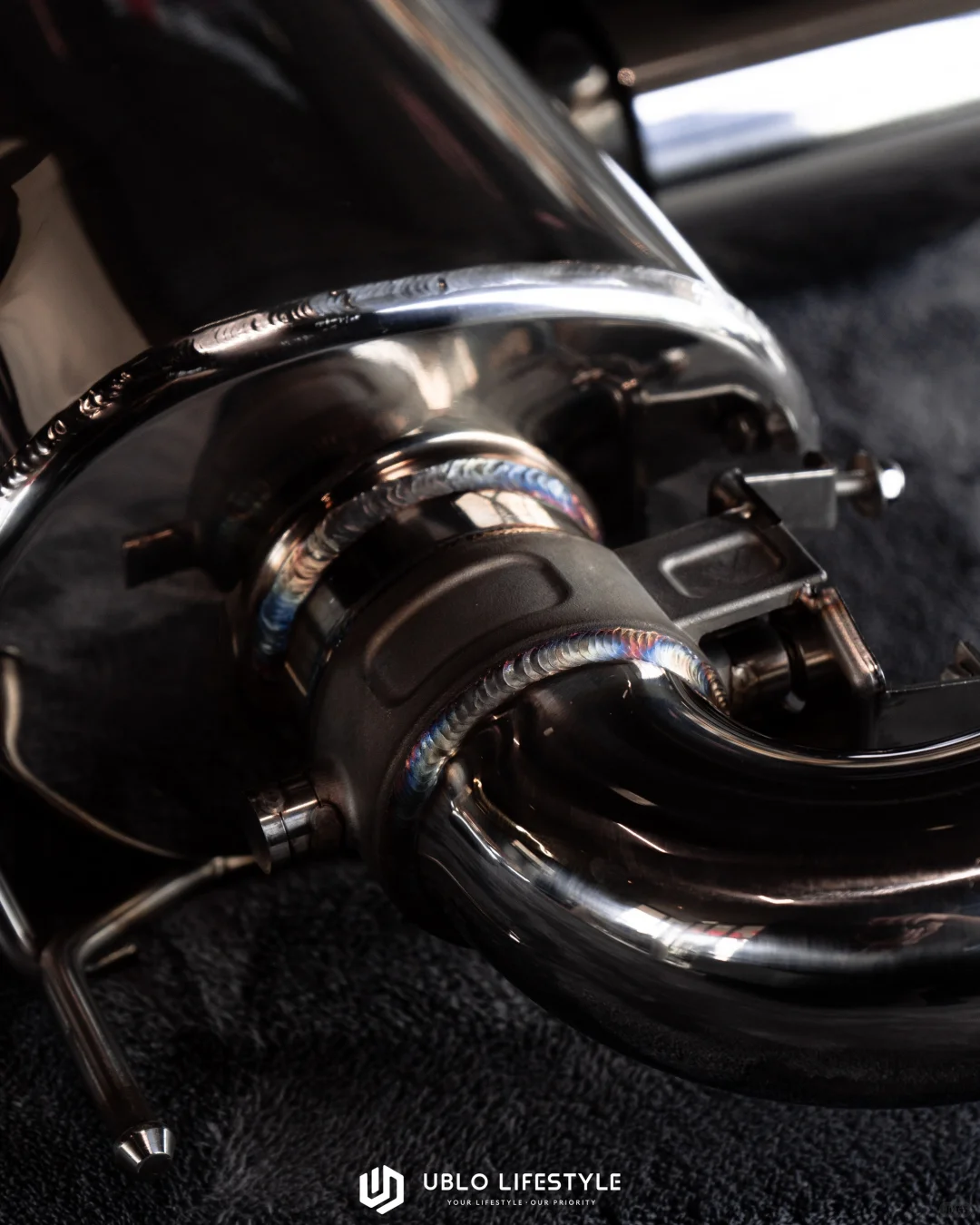 之前车主来刷了2阶程序和安装MST进气,玩了一阵子觉得少了排气声好像不是很完美,于是安排了一套FI EXHAUST,简直爽歪歪[黄金薯R]