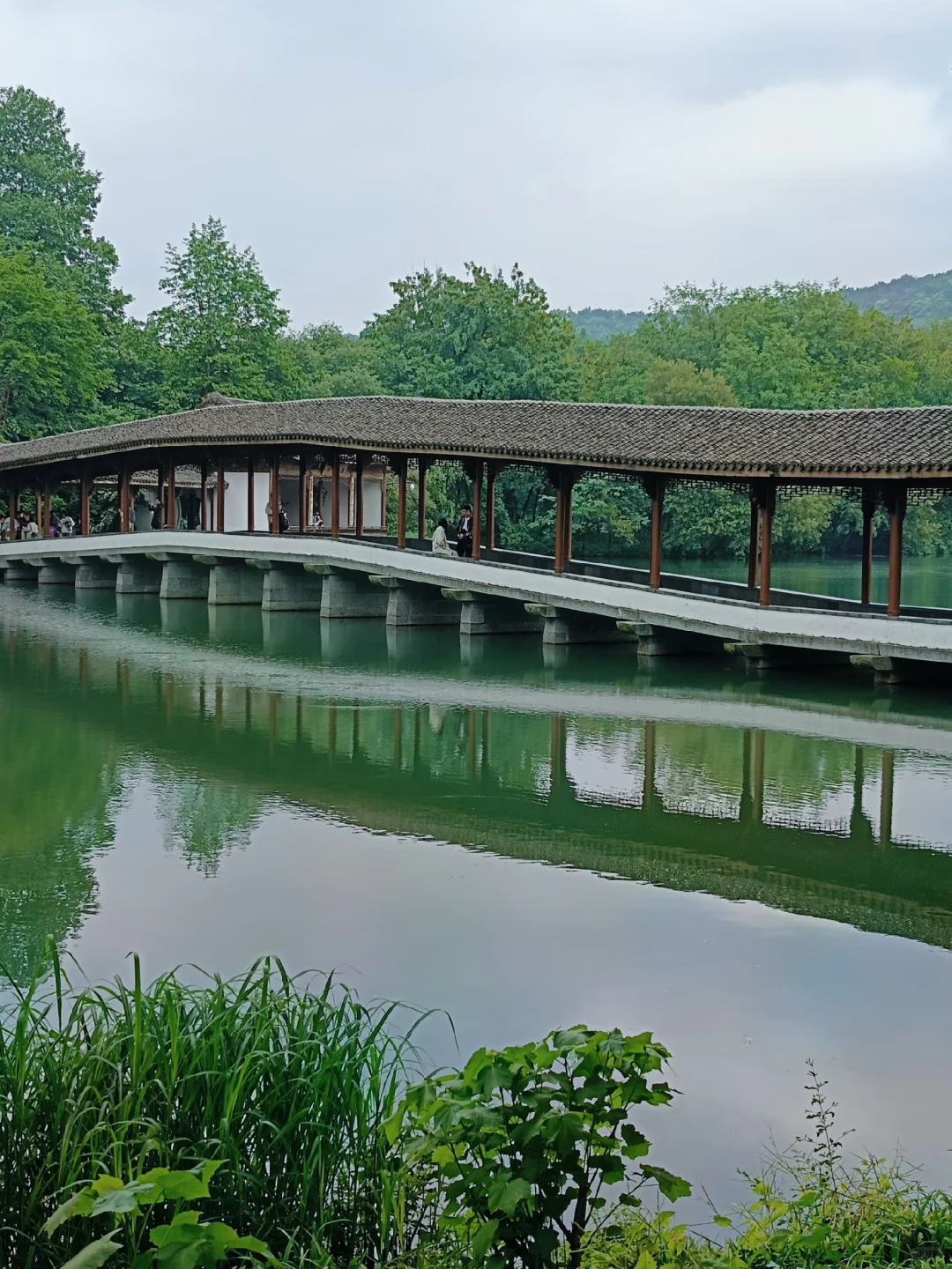 非常小众隐秘的西湖景观,下雨天时湖面泛着薄雾会更美更像仙境。定位“黛色参天”是一个湖畔连廊与湖中亭,可以坐着放空