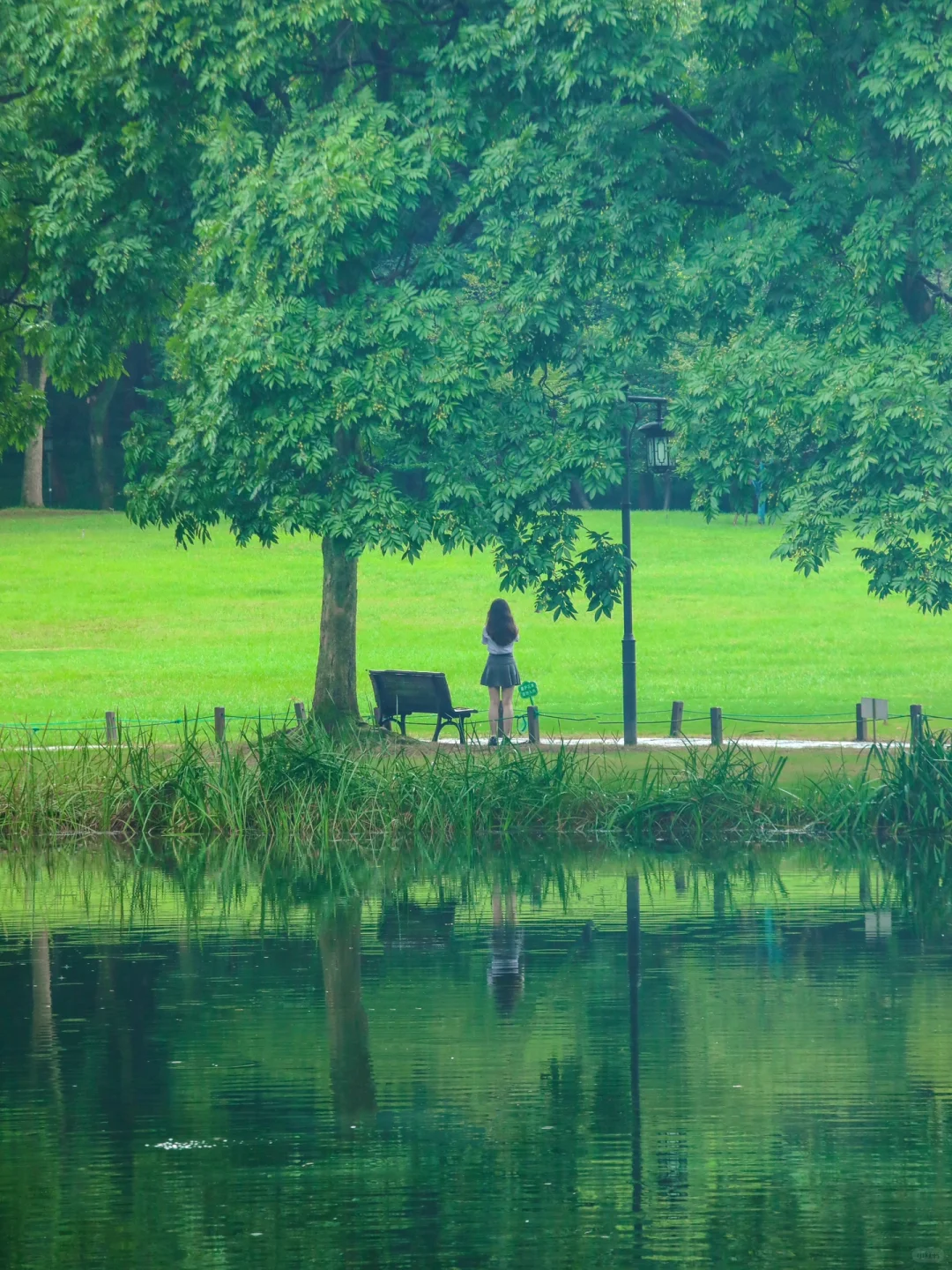 非樱花和郁金香季节的太子湾人少安静,适合遛娃散心,湖畔的长椅极具电影感🌲