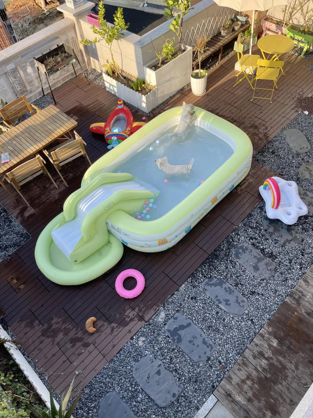 露台泳池趴 隔壁小狗都给羡慕哭啦