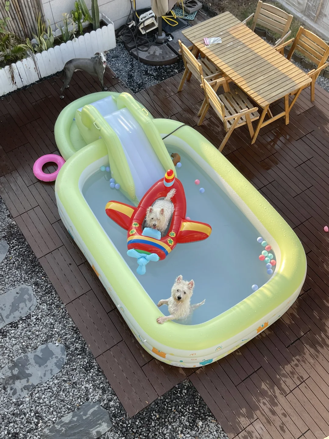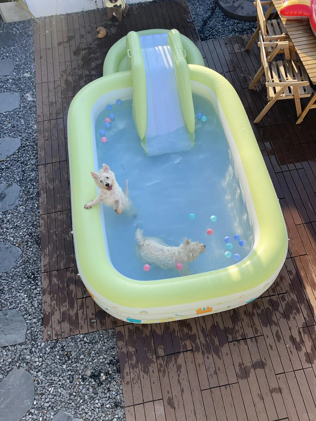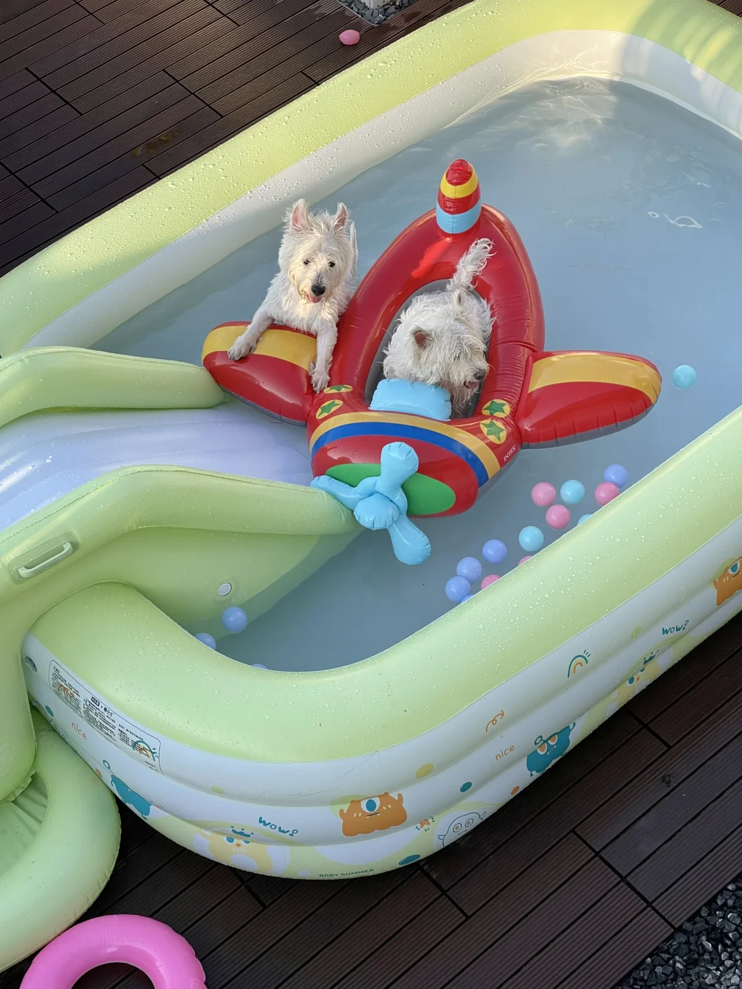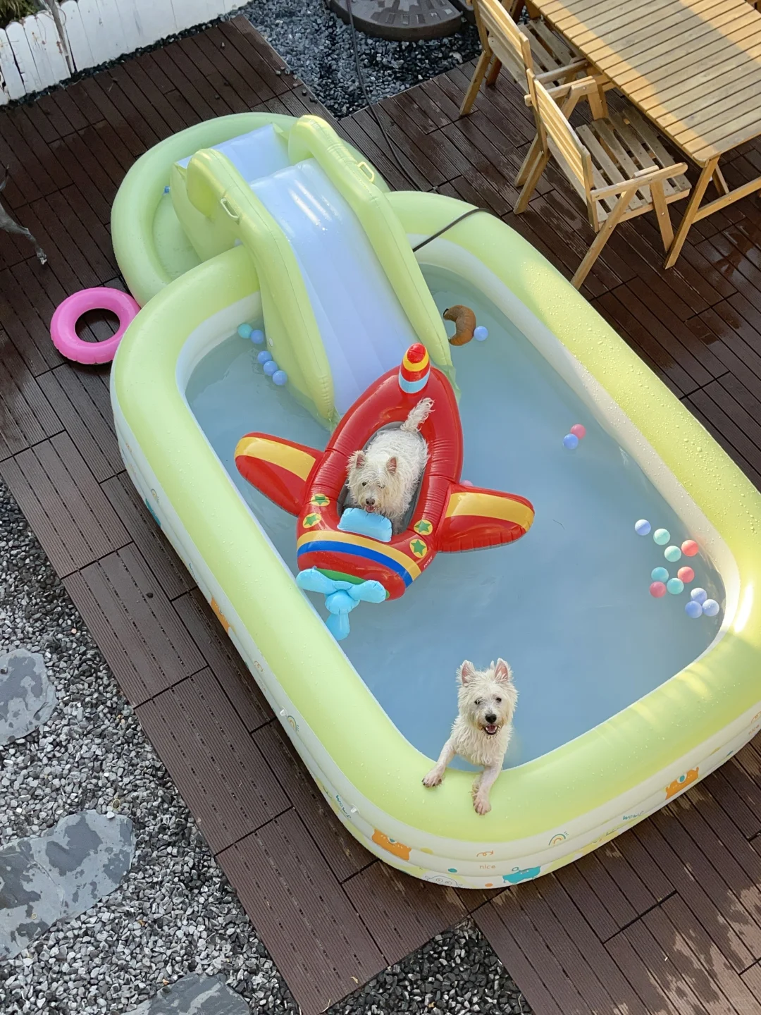 波吉和番茄表示都拒绝水花😅 但是仔仔 天生泳者!