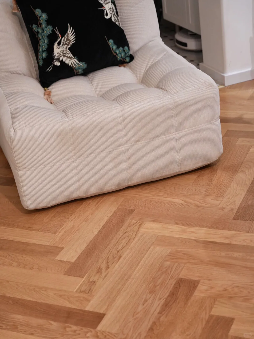 经过精挑细选,这款安信橡木人字拼地板让我眼前一亮。它无异味,让我和猫咪🐱都能安心呼吸,摸上去,手触感细腻如丝,让我感受到了家的温柔与舒适。