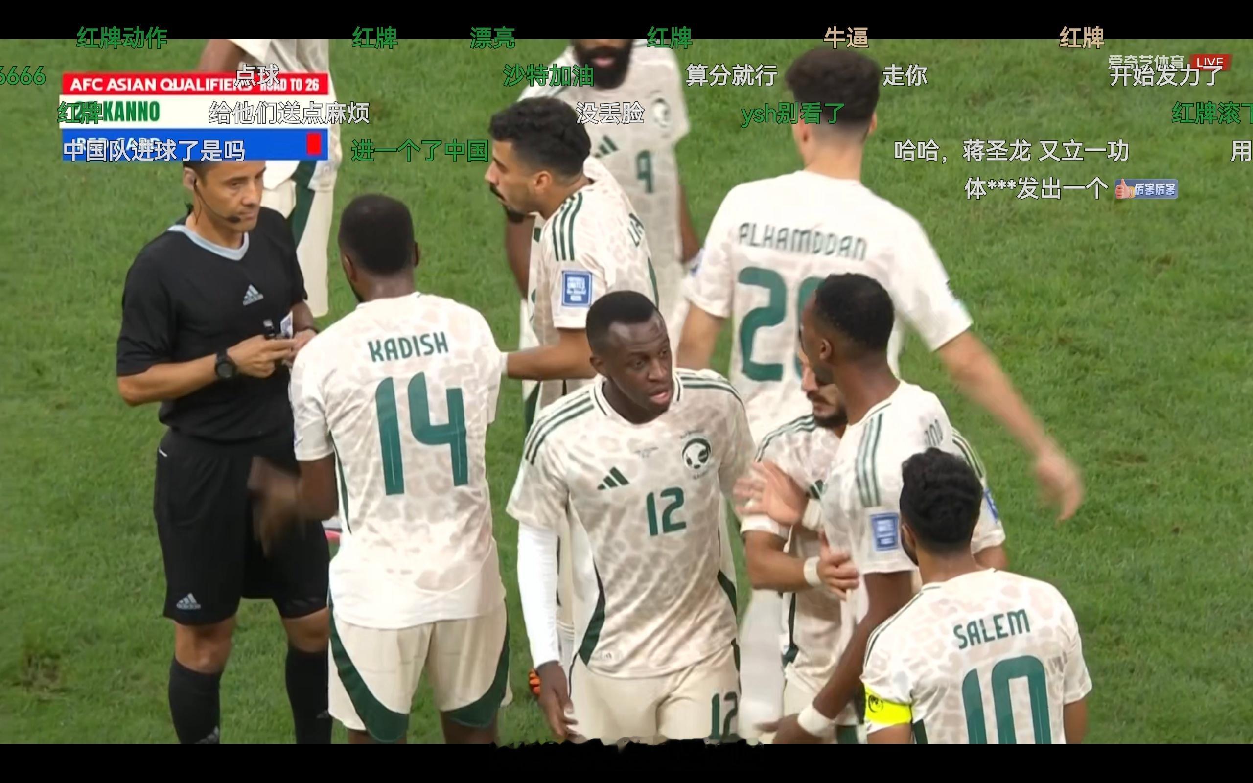 #国足vs沙特#蒋圣龙踢得不错,一进球一造犯规对方红牌罚下,沙特只剩10名球员了