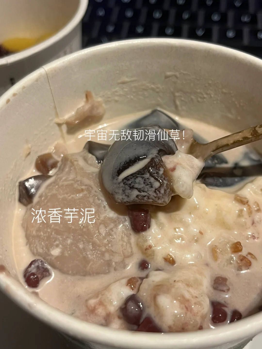 这辈子真没吃过这么好吃的仙草,整个超级滑软,而且不是咬在嘴里之后就变得稀碎,而是是滑滑软软一块块地我嘴里荡漾跳舞(真没夸张、没有任何比喻、如实描述😭你去吃吃就懂了)又柔又韧,感觉我的舌头这辈子没有被任何食物这般抚摸过…真的真的封神了😣