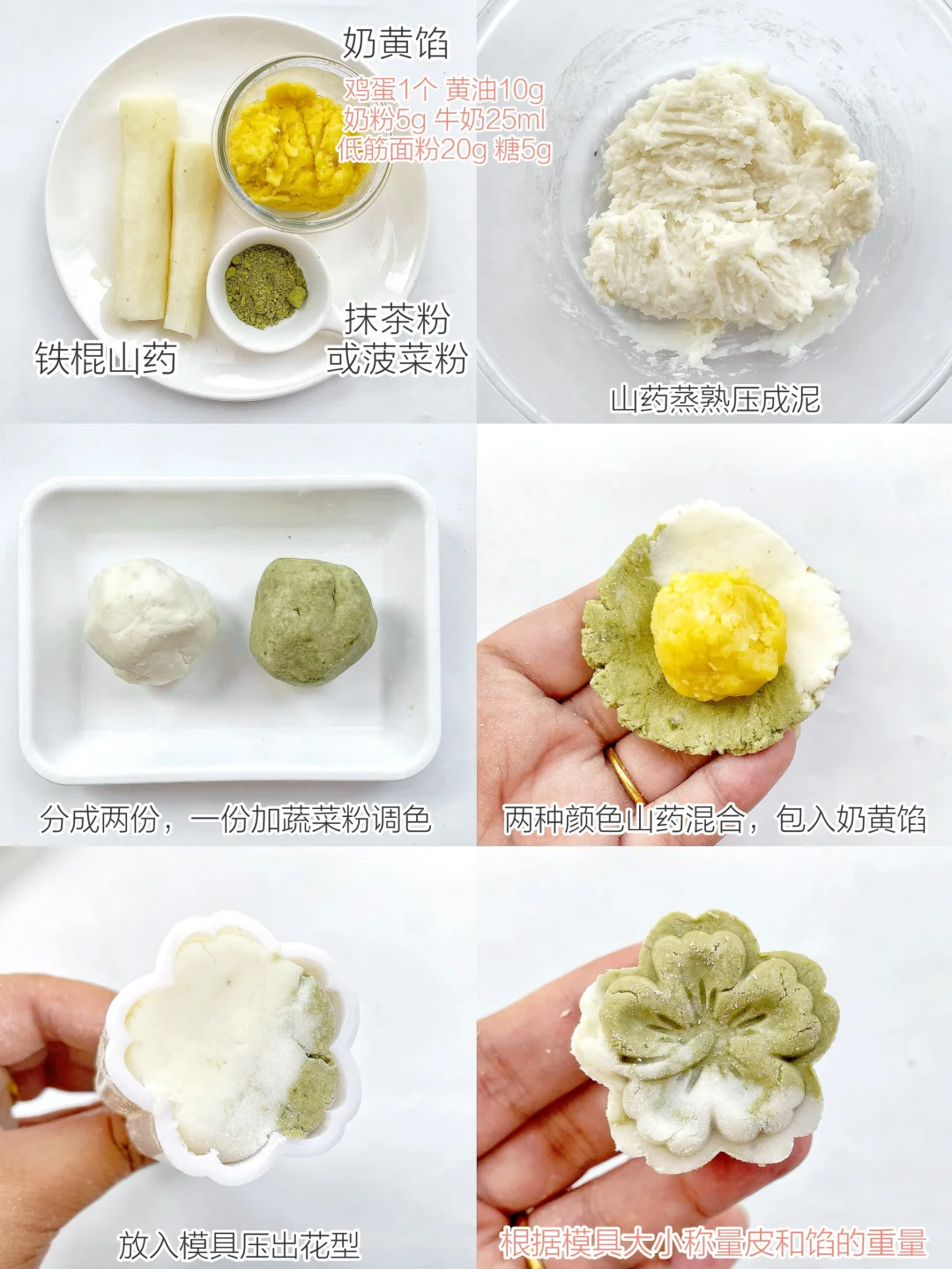 🥮中秋节到啦,分享几款宝宝们的小月饼,饼皮都是山药做的,口感软糯糯又容易消化,馅料也都是老少皆宜,赶紧做收藏起来做一下吧,不用烤箱,敲简单哦!! ~ ⬇️小贴士: ✨山药要选择含水量少的铁棍山药,蒸熟后趁热压成泥,再摊开晾干一下水分,这样捏起来更容易成型。如果你的山药含水量多,可以加少量炒熟糯米粉或者宝宝吃的米粉。 ✨大宝宝吃还可以在山药泥加少许糖或者炼乳。 ~ 💗红豆山药月饼 💜紫薯山药月饼 💚奶黄山药月饼 💛红薯山药月饼