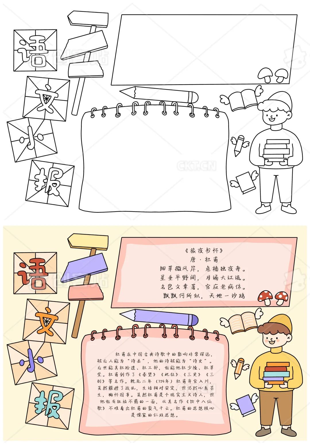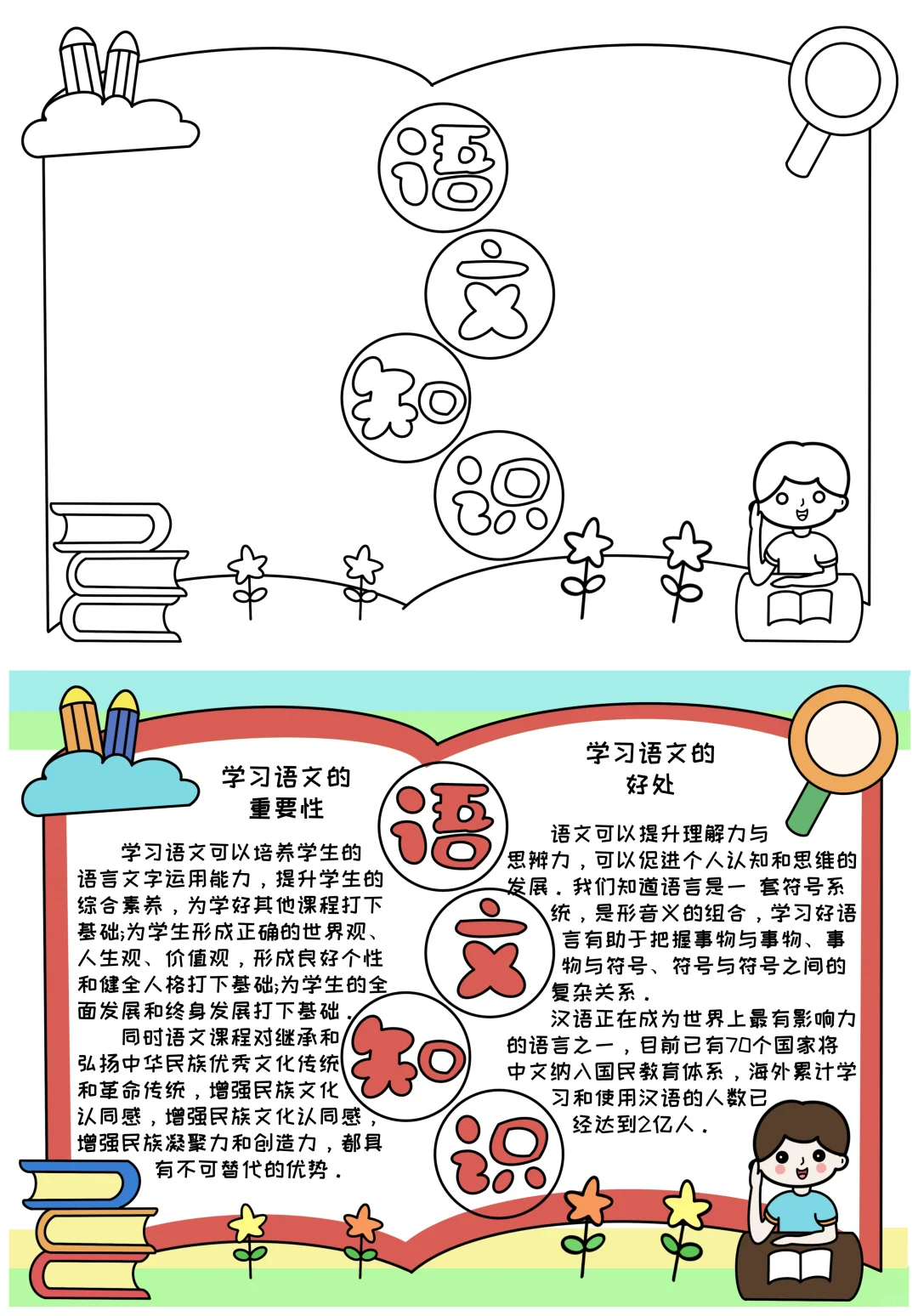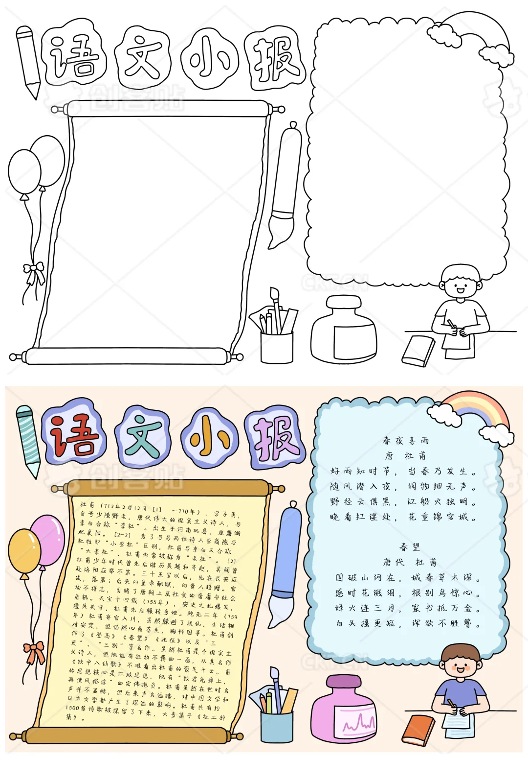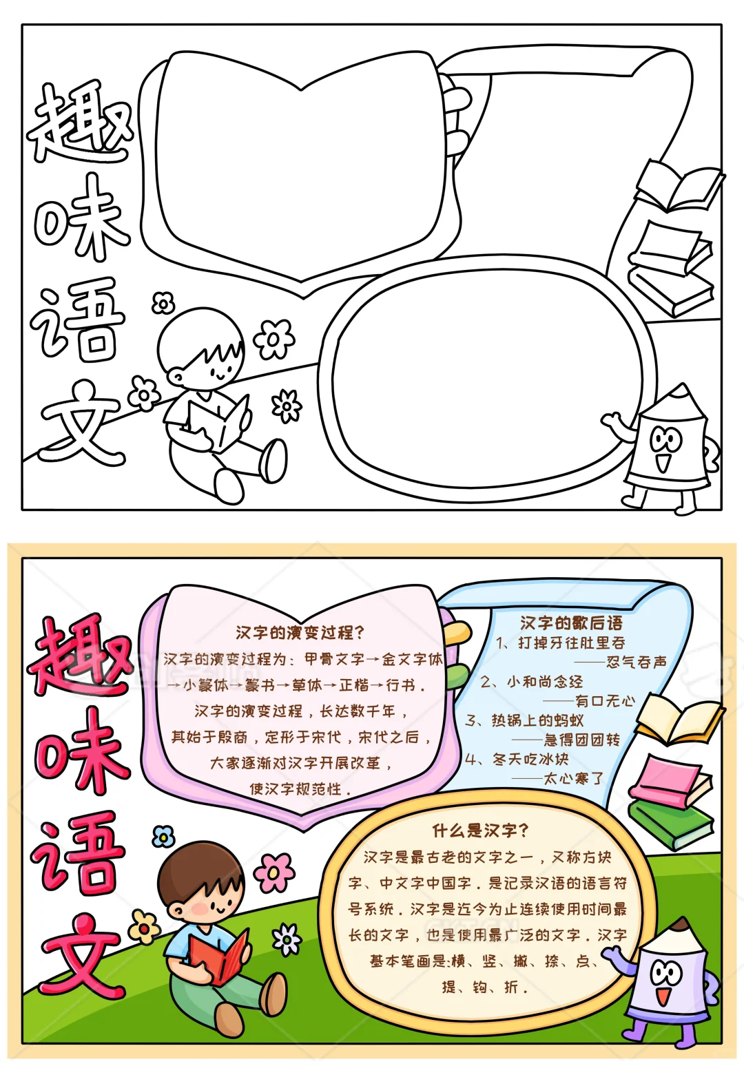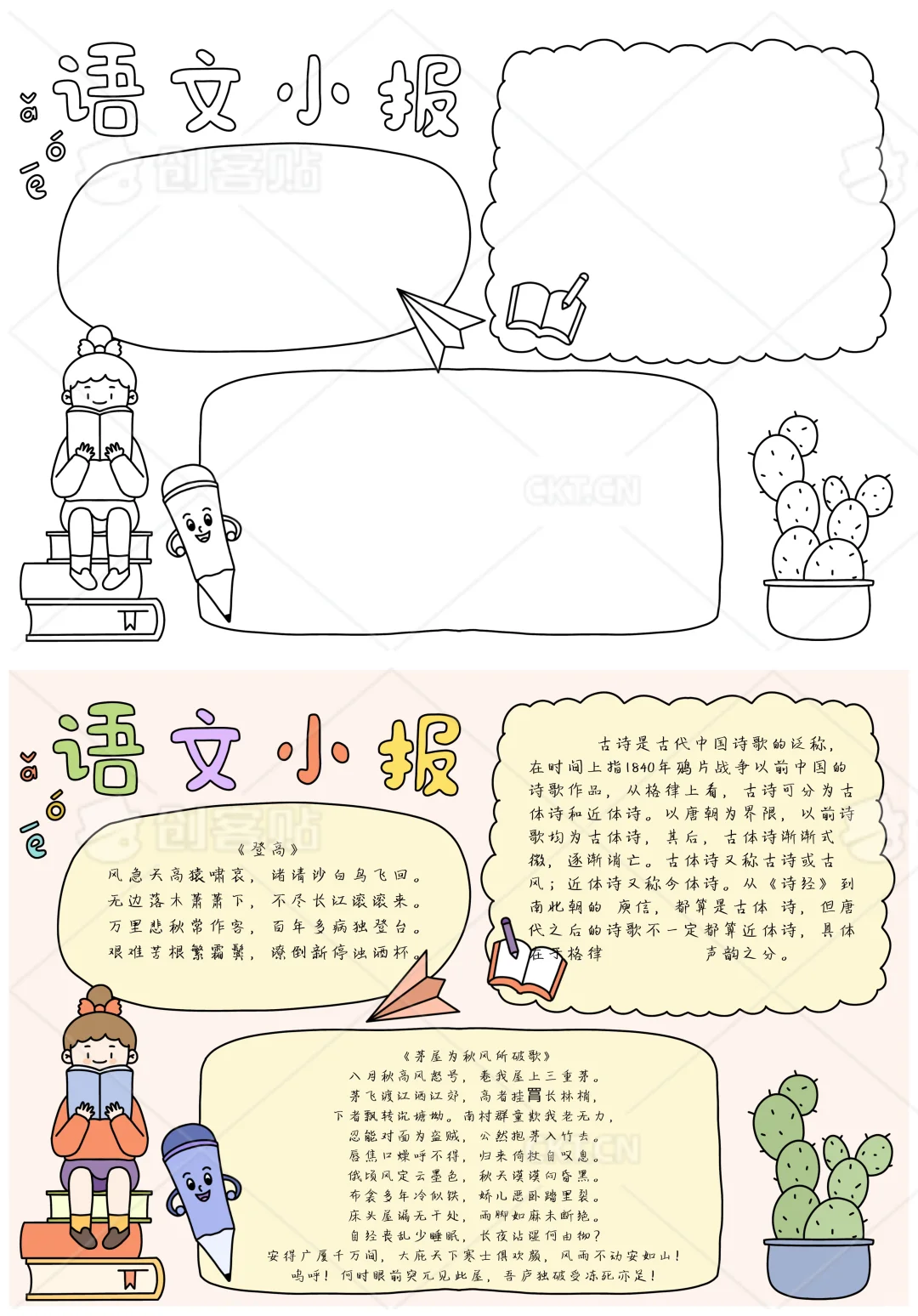 📚语文手抄报、语文小报模版,有线稿。 📚模版图片来源于