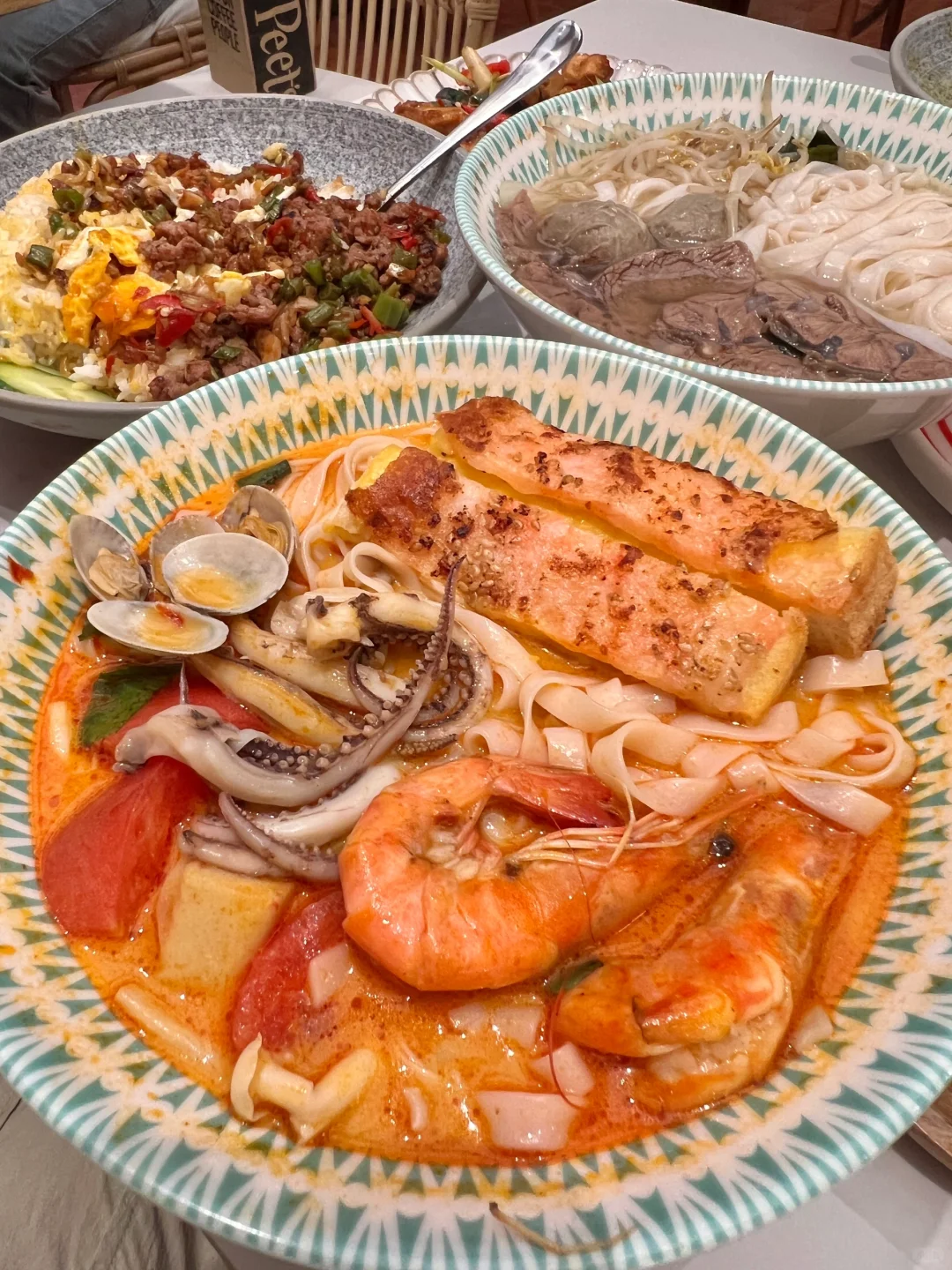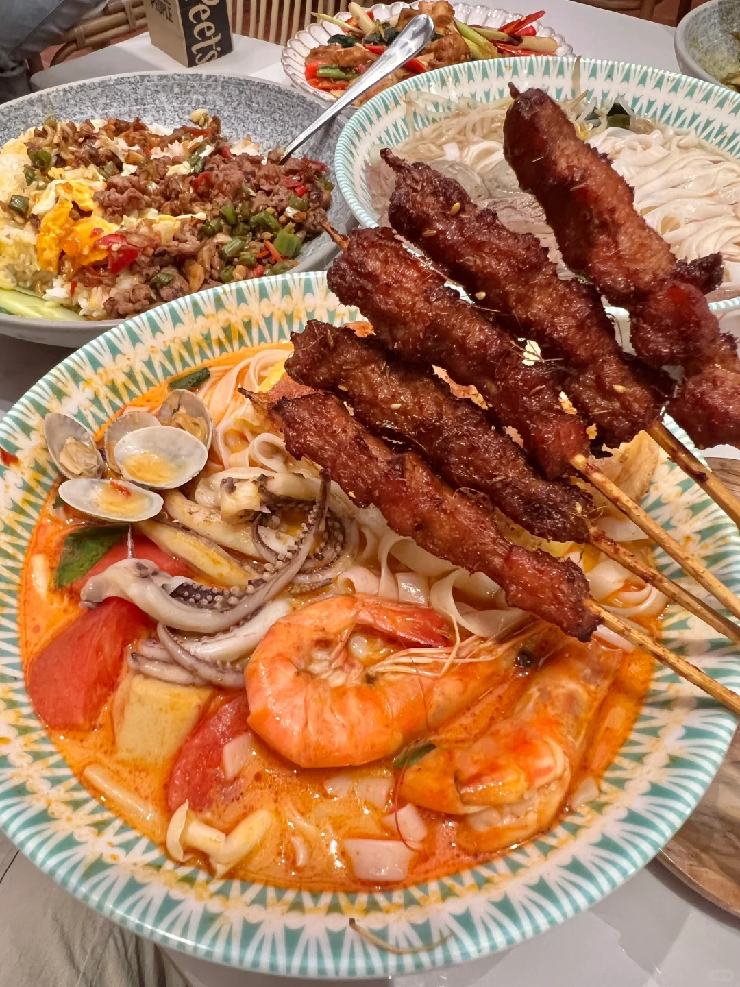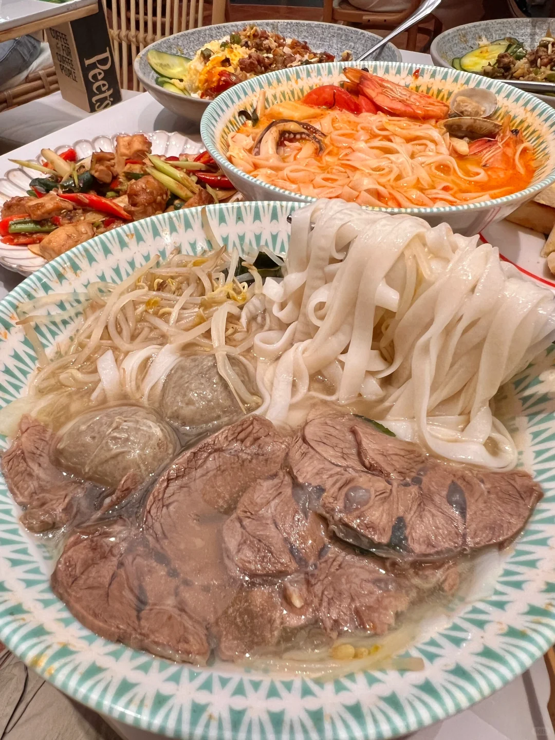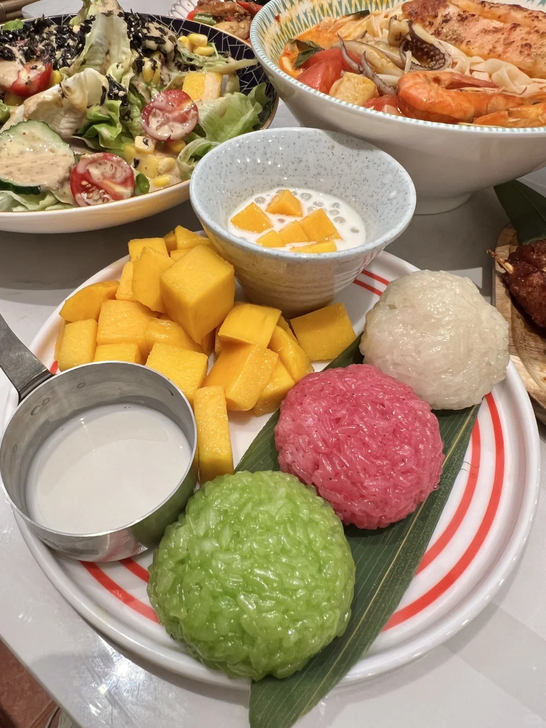 今天吃的这家打抛饭是真不错,三个人各点了一份都没踩雷,很好吃,推荐烧椒皮蛋打抛饭,还加了流心蛋,划破蛋液和米饭拌开一起吃,特别香,真的哐哐一顿炫 还有吃了越南牛肉粉,马来沙爹牛肉串芒果糯米饭,甜甜糯糯的