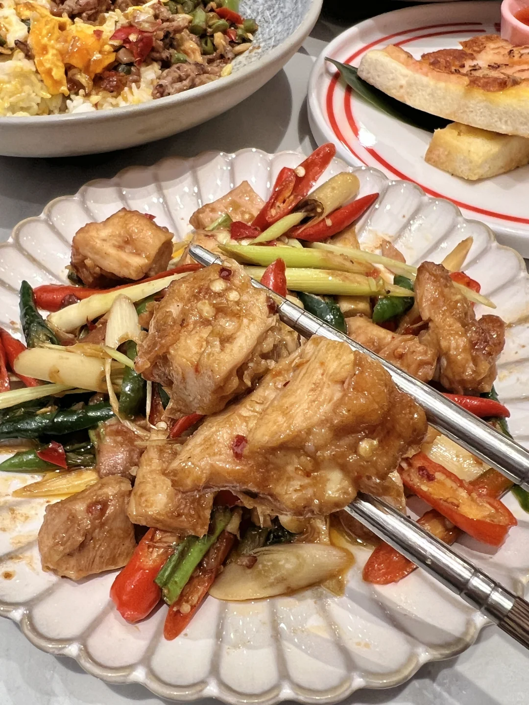 今天吃的这家打抛饭是真不错 三个人各点了一份都没踩雷,很好吃 推荐烧椒皮蛋打抛饭,还加了流心蛋 划破蛋液和米饭拌开一起吃,特别香 真的哐哐一顿炫 还有吃了越南牛肉粉,马来沙爹牛肉串 芒果糯米饭,甜甜糯糯的 他家用餐环境不错,很喜欢和姐妹来吃饭聊天 是反复会去吃的店