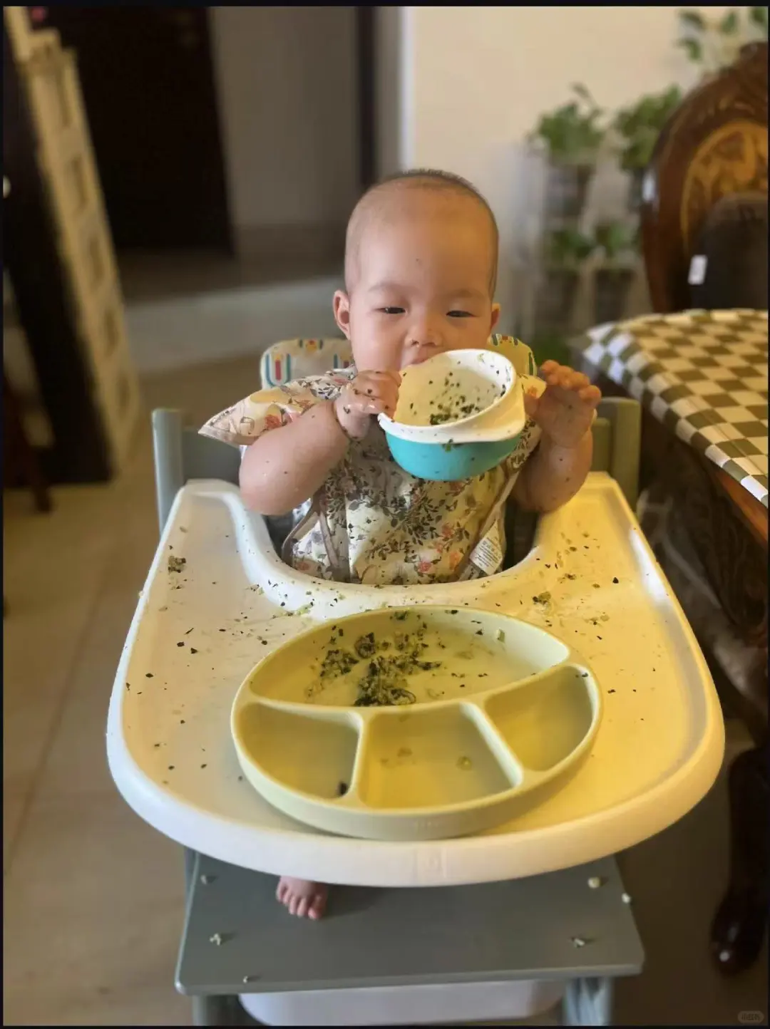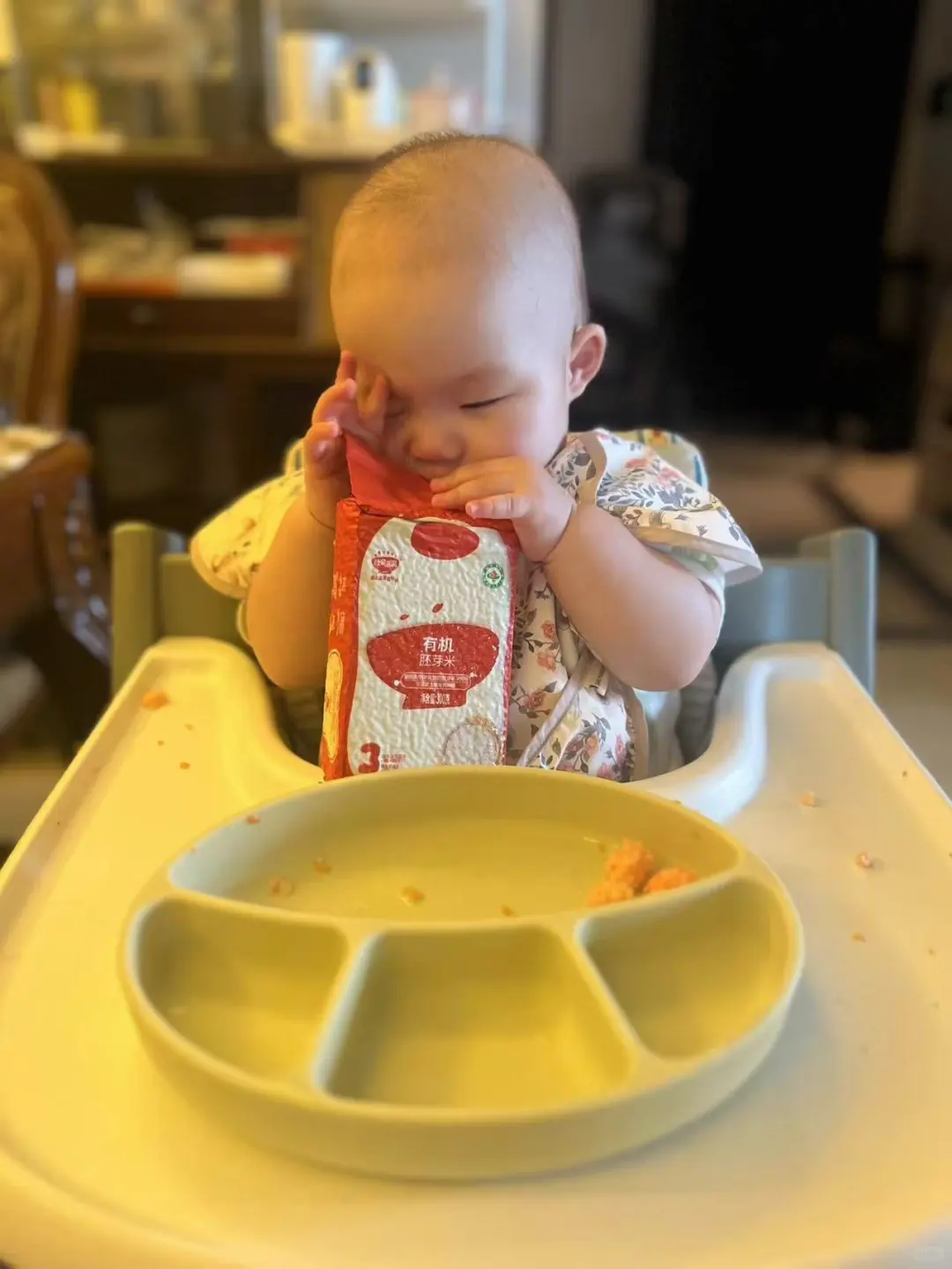 我们从小就是天选干饭人,不光奶喝的好,五个半月添加辅食以来辅食也吃的嘎嘎香,现在宝宝八月龄了,给她安排第一口十倍粥,也是光速炫光!!!