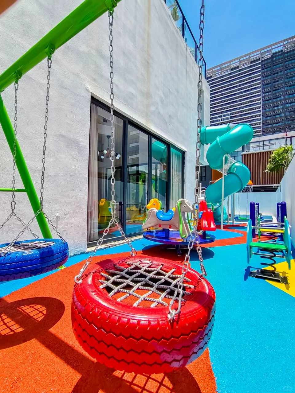 ✨庭院儿童乐园➕室内波波池🤸🏻♀️庭院和别墅室内还有旋转木马🐴秋千滑梯🛝波波池🎊天气稍凉玩水怕太冷🧊也可以尽情玩耍🛹