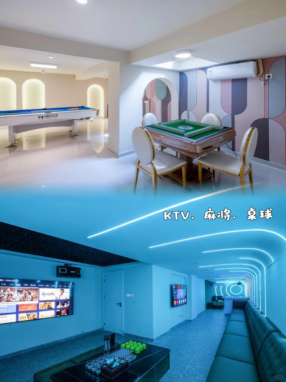 ✨别墅内设有多种娱乐设施🎈专业KTV房欢唱歌不限时真的太爽啦🎤自动麻将桌🀄桌球⑧宅在别墅也不无聊🎉
