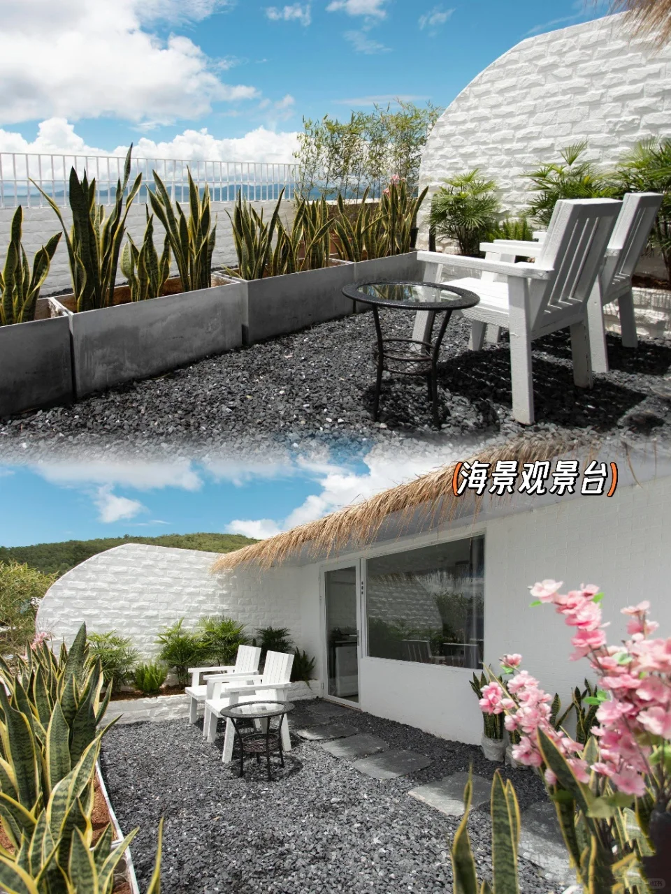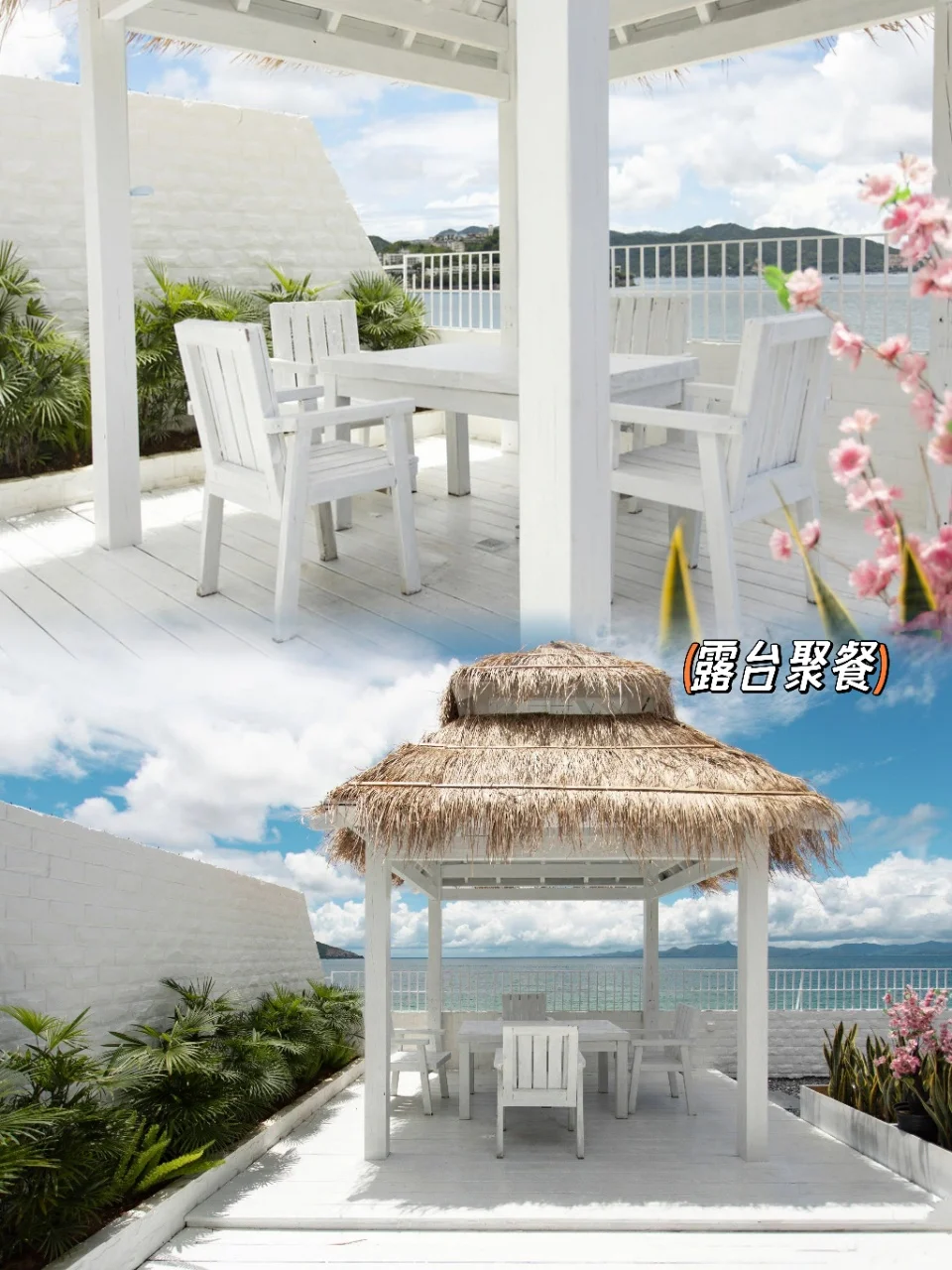 ✨海景大露台🌊户外用餐区域的海景美不胜收💖拍照好出片📷坐在花园🏡晒太阳看海真的好惬意🎉