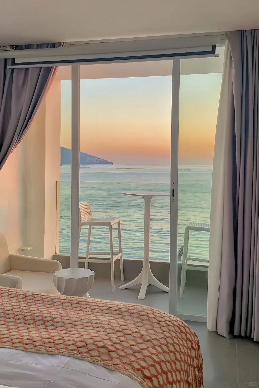 ✨坐落沙滩🏖️出门就是海🌊坐拥一线海景🏝️观景绝美🌇在床上就能看到海🏝️躺着就能看到海实在太美好了🥳