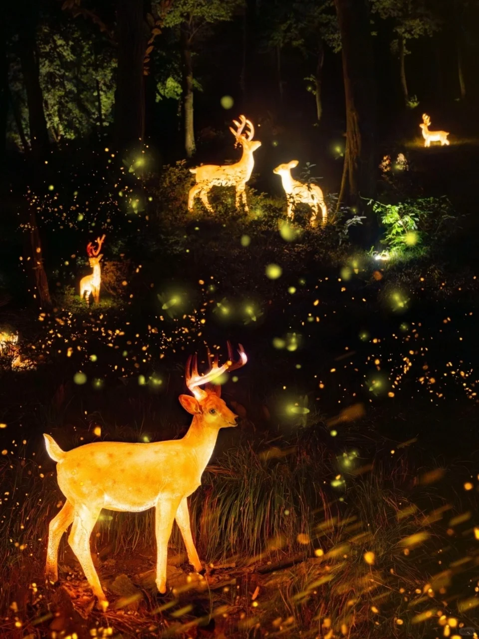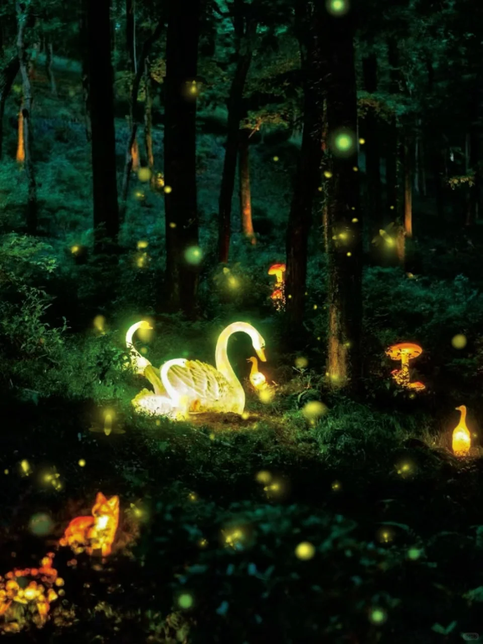 白天穿梭在碧绿的茂密山林,伴着潺潺的小溪,亭台楼阁,步步皆景,沿石阶而上一路打卡十二景观,可体验这里的上山云梯和下山滑道,节约体力,更增加趣味性~夜幕降临,晚上变成如梦如幻的流光森林,林深时见鹿,萤火点点,如童话般梦幻浪漫~