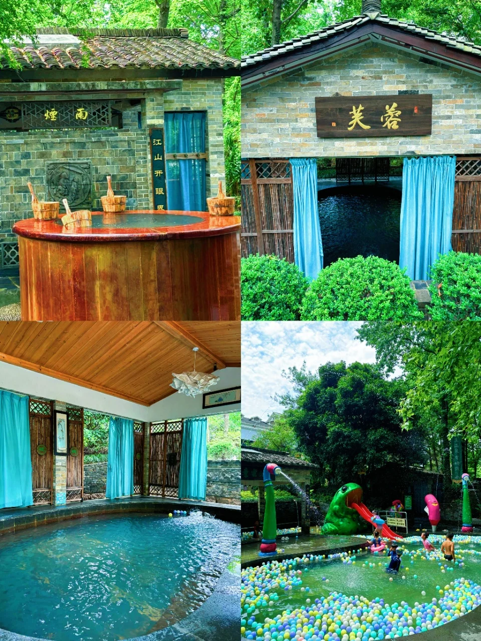 天然温泉水,富含多种矿物质,里面有多个泡池,也有儿童区域,在森林里泡温泉真的太安逸咯~