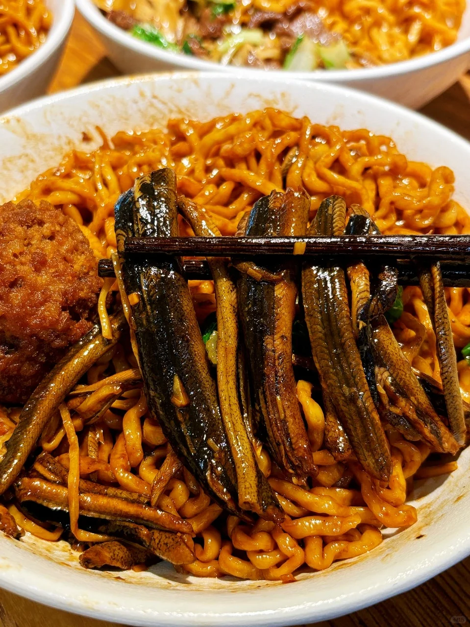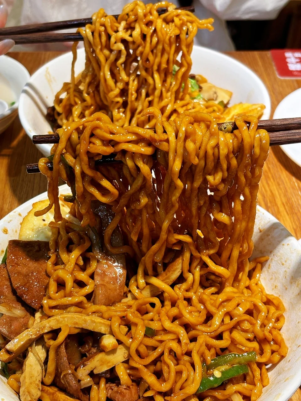 在新街口和 crush 逛街时 发现一家上海开来的现炒浇头面馆 现点现炒的浇头,猛火爆炒,很有锅气🔥手工曲面,吃起来更有嚼头 ✔️腰花猪肝面 腰花 hin 鲜美,经过特殊刀法处理,吃起来口感贼嫩,食材也很新鲜,没有腥味 ✔️爆炒长鱼面 长鱼肉质肥厚,入口弹、嫩、滑,酱香浓郁,咸香可口