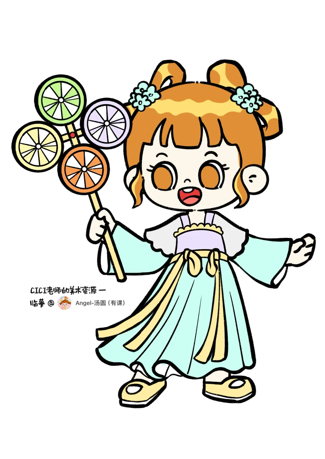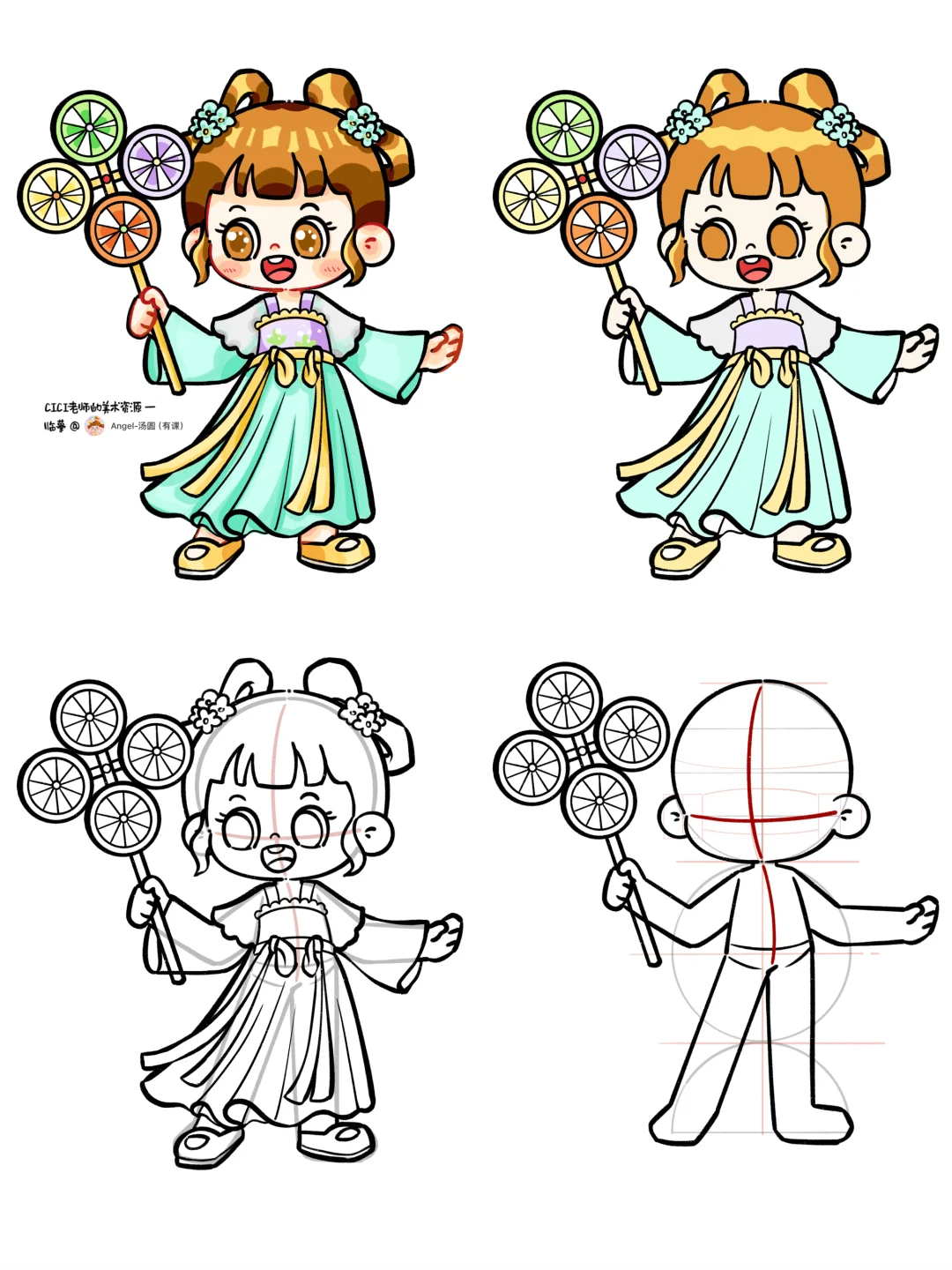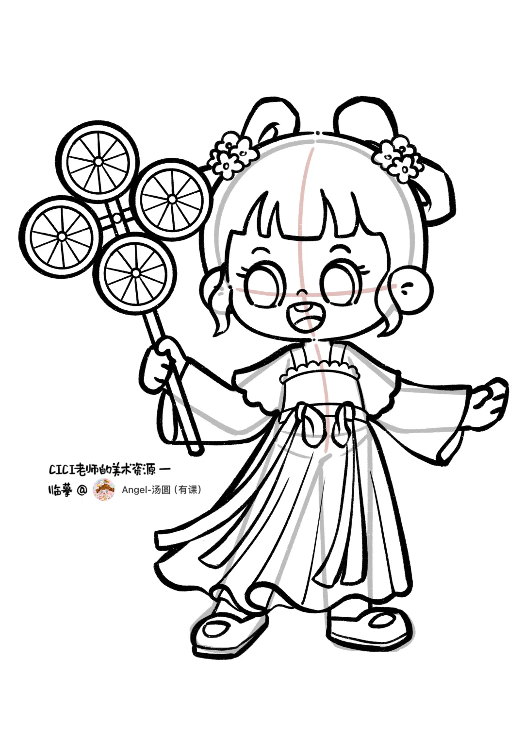 🎨2.5头身古风小女孩,临摹📚适用传统节日主题画。