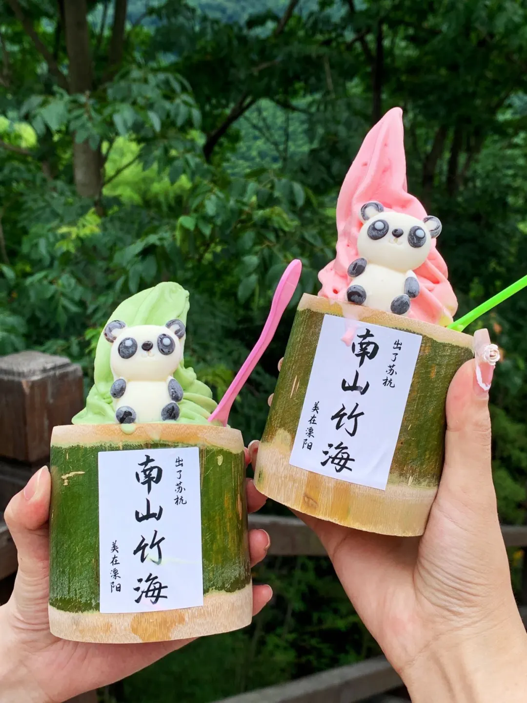 在景区里面游玩,坐漫画小火车去山顶看熊猫🐼,坐索道去另一个山头吸氧,下了山在静湖租一个竹筏,吹吹风格外舒服😌。湖边的咖啡店☕️也是个看风景的好地方,别忘了去拍美照📷。