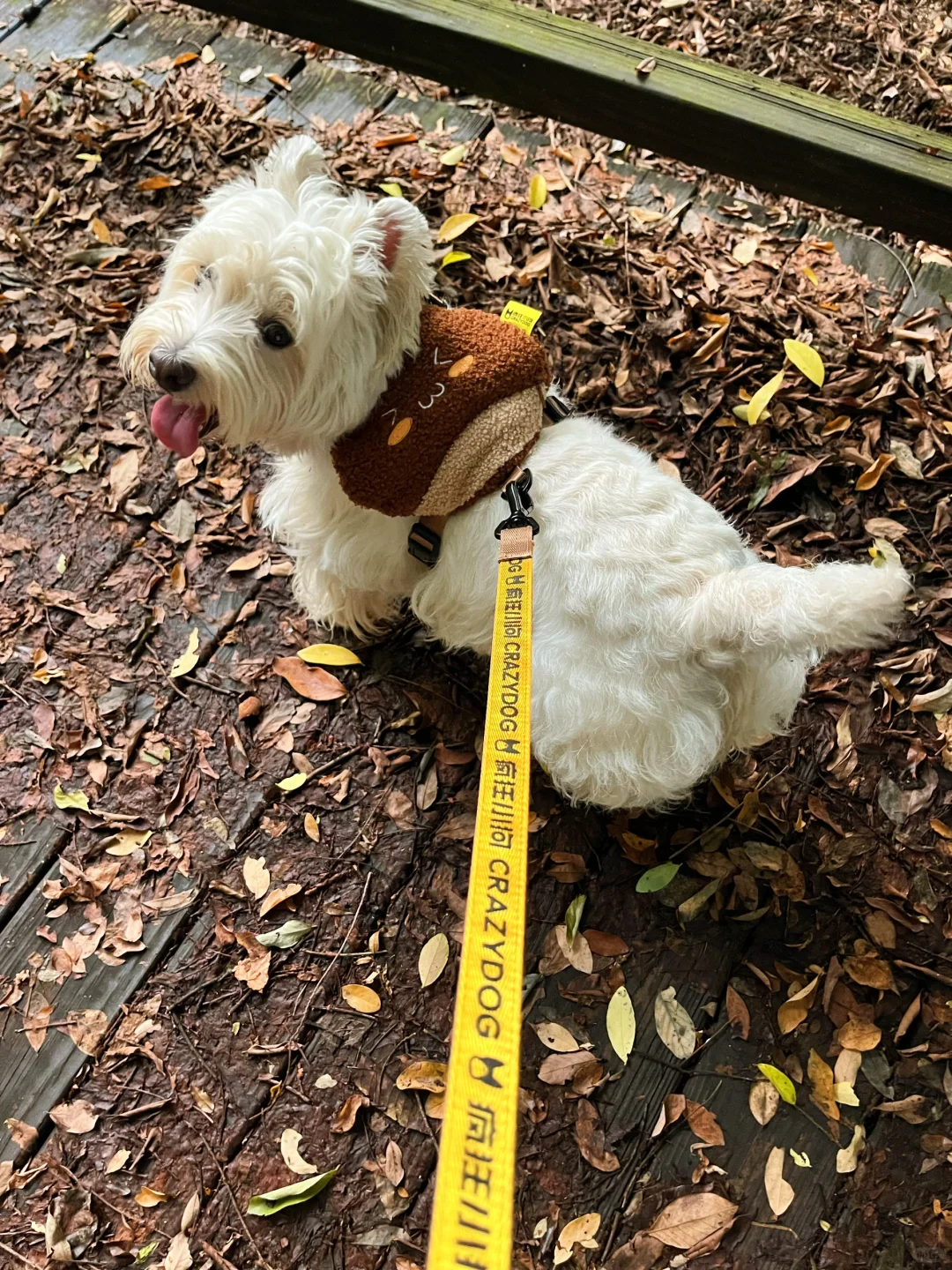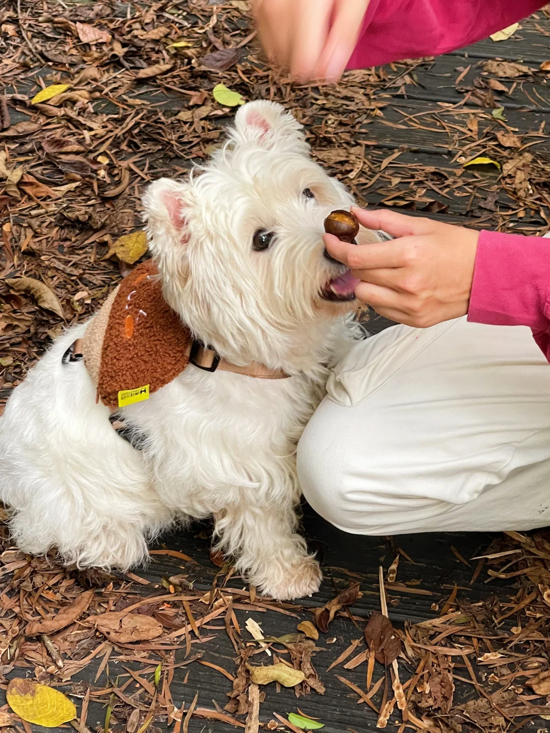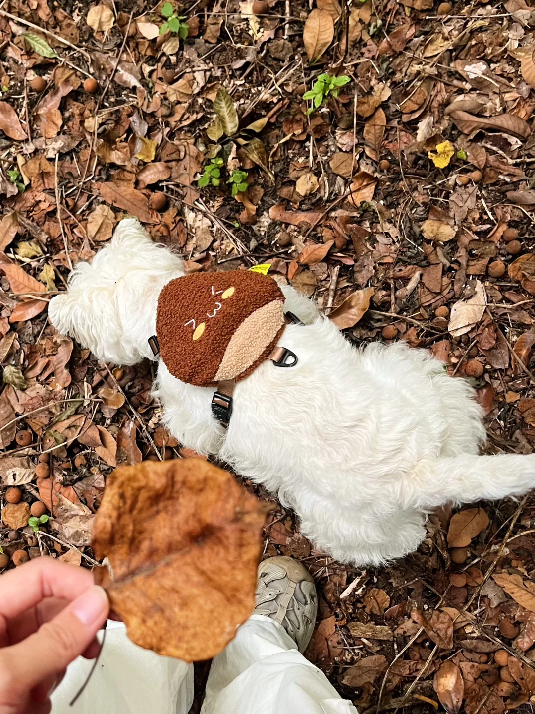 小狗的快乐就是这么简单:看到有颜色的秋天,吃上秋天的栗子🥰