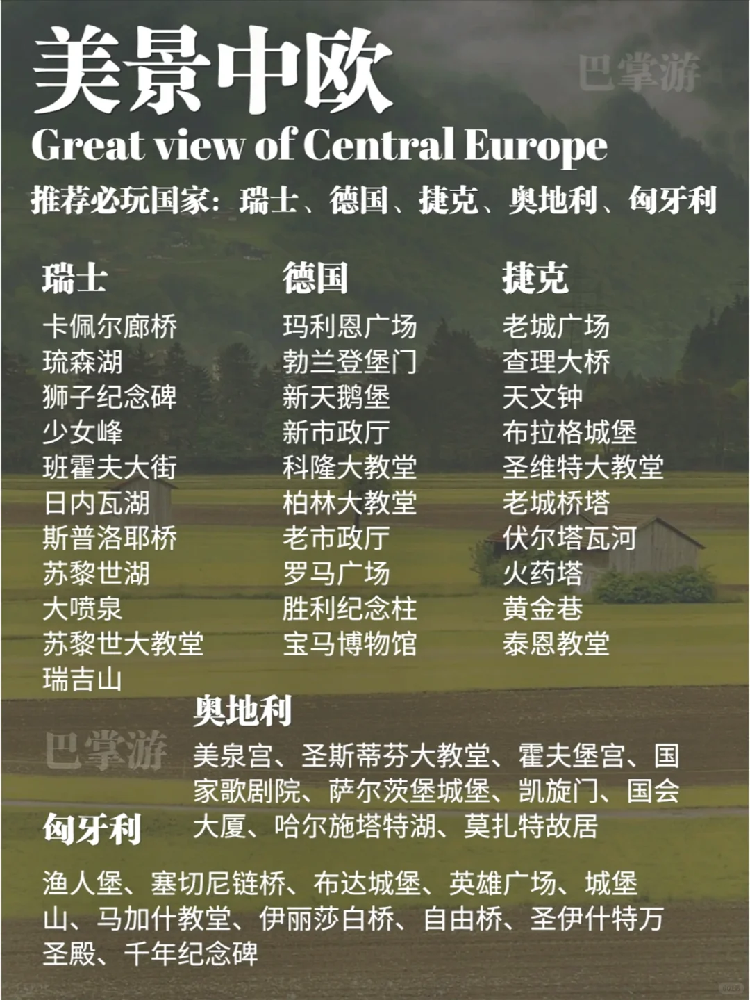 欧洲,这片古老而充满魅力的土地,孕育了无数令人心驰神往的旅行目的地。从壮丽的自然风光到深厚的文化底蕴,从浪漫古城到现代化的都市,每一个角落都散发着独特的魅力~💗 💟【西欧】 ▪