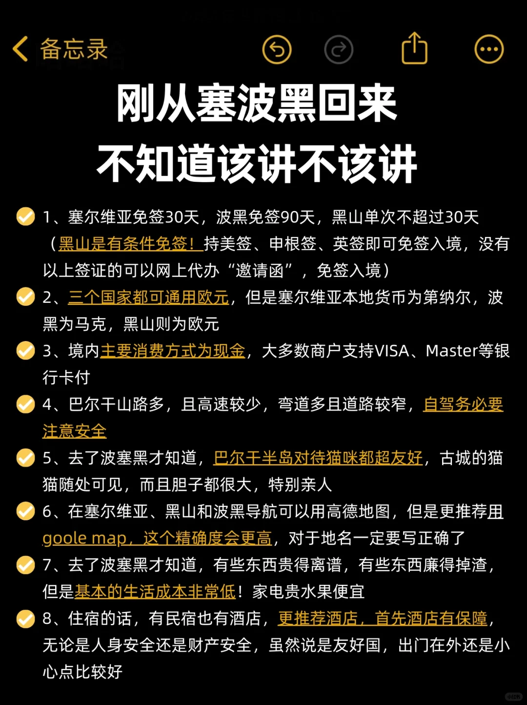 8-10月想去波塞黑的姐妹们,不要再看两三个月甚至一年前的攻略了,以前的攻略可能有一些信息差,今天我就将塞波黑旅游最新攻略分享给大家❤️