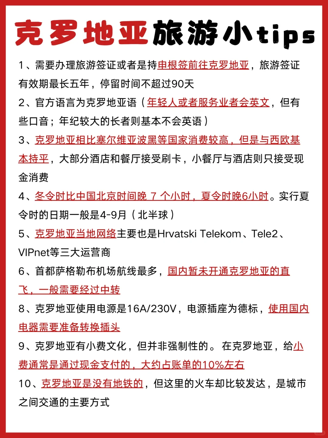 这样既浪费时间,玩的也不愉快~今天我就把克罗地亚旅游当地的一些情况分享出来给大家‼️