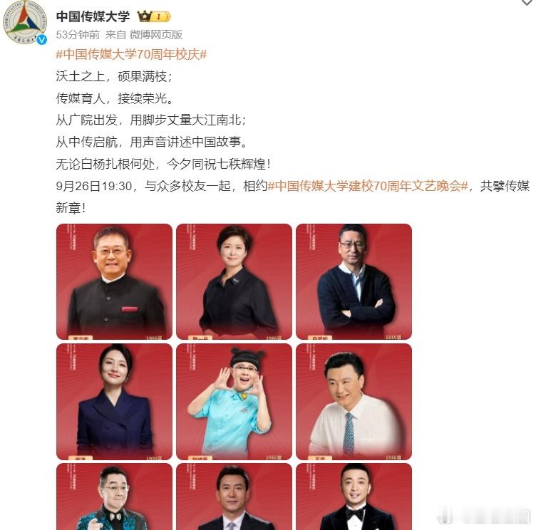#贺峻霖将参加中传70周年校庆##中传70周年校庆官宣了贺峻霖#中国传媒大学建校