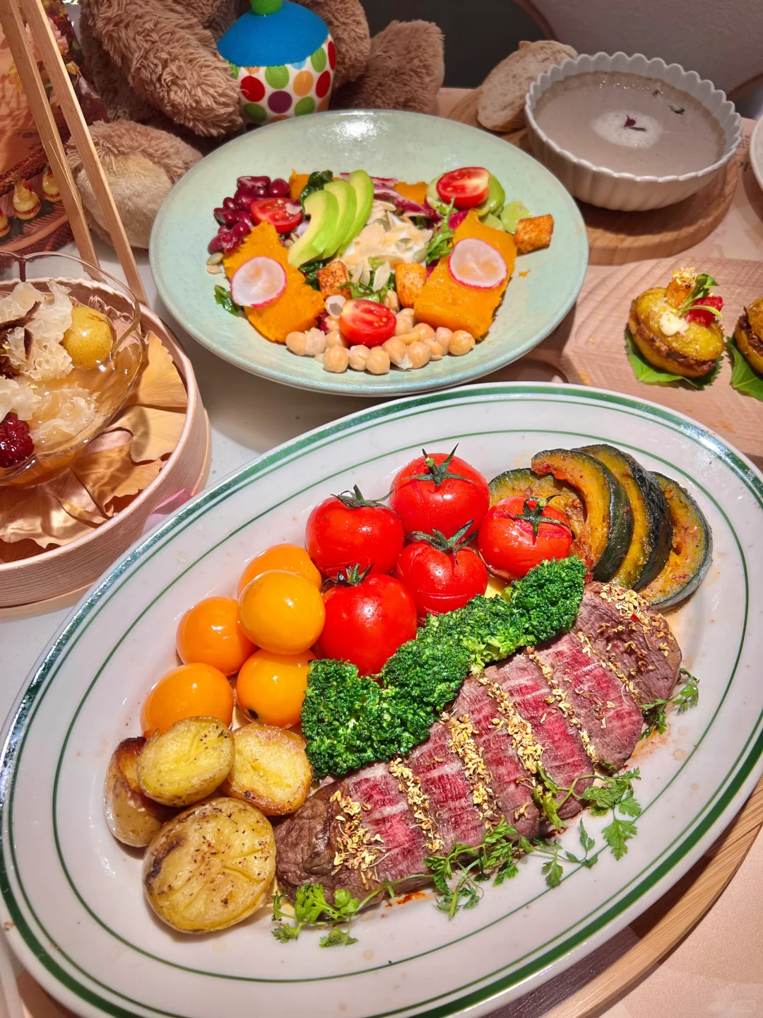 真的感谢闺蜜 一进店差点美哭了,鲜花围绕的餐厅 在这里用餐有种梦幻般的感觉 好像自己就是公主👸🏻 不是那种徒有虚表的店,真的有在用心做餐饮 我们吃的是桂花秋日套餐 配置的很丰富哦,原来以为会吃不饱 结果吃到撑诶,因为每道菜都吃完了 噂嘟好好吃啊