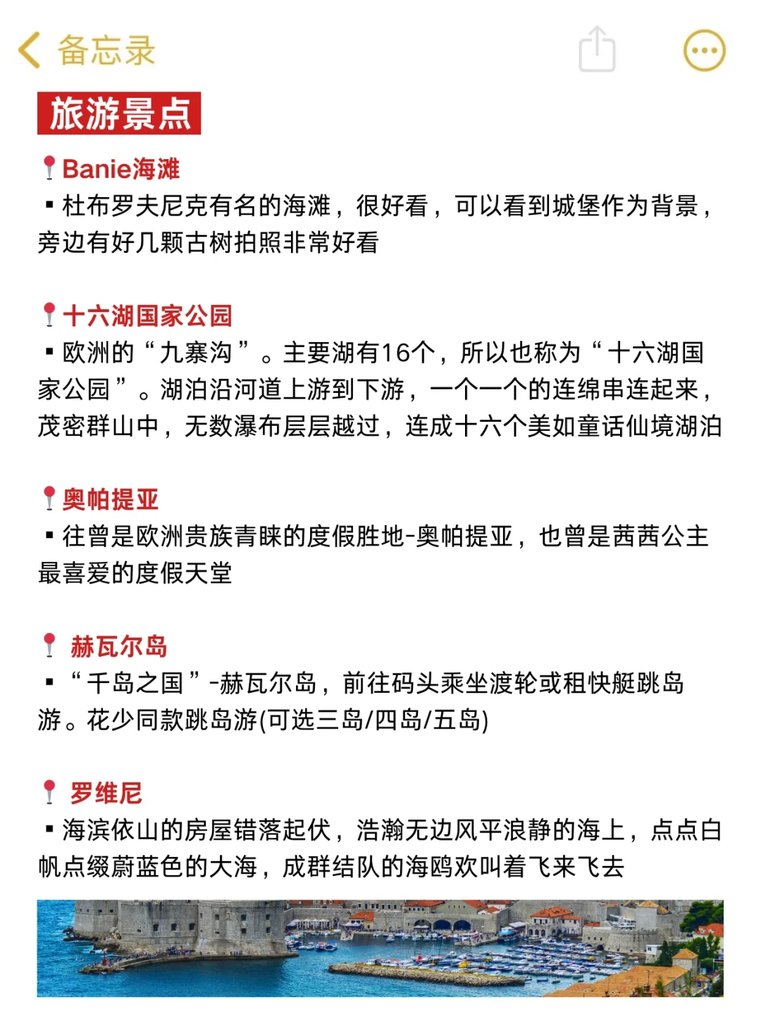 姐妹们,刚从克罗地亚旅行回来,熬夜给大家整理了一份关于详细旅游攻略和避坑建议👇